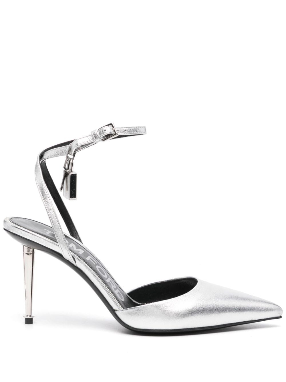 padlock-charm metallic pumps Highlights - Silver-tone - Calf leather - Metallic effect - Padlock and key charm - Silver-tone hardware - Pointed toe - Buckle-fastening ankle strap - Leather lining - Branded footbed - High sculpted metal heel - This piece comes complete with a protective dust bag. Made in Italy Composition Lining: Calf Leather 100% Outer: Calf Leather 100% Sole: Calf Leather 100% SIZE & FIT Measurement HEEL 2.95 in(7.5 cm)