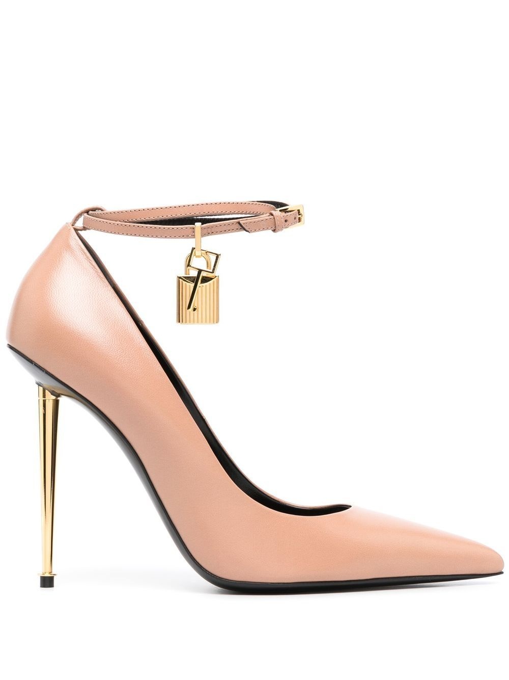 padlock-detail 110mm pumps blush beige calf leather goatskin padlock detail gold-tone hardware pointed toe buckle-fastening ankle strap branded leather insole high stiletto heel Made in Italy Composition Outer: Calf Leather 100%, Brass 100% Lining: Calf Leather 100% Sole: Calf Leather 100% SIZE & FIT Measurement HEEL 4.33 in(11 cm)