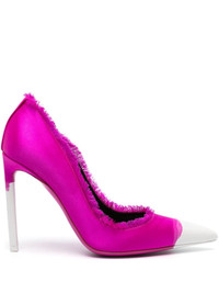 painted satin pumps Renowned for its timeless yet contemporary designs, TOM FORD presents this pair of high heels from the brand's AW23 edit. These pumps are rendered in a painted hot-pink satin upper and rest atop a high stiletto heel. Highlights - Hot pink/white - Calf leather - Painted satin upper - Pointed toe - Branded leather insole - High stiletto heel - Frayed edge Made in Italy Composition Silk 100% SIZE & FIT Measurement HEEL 4.13 in(10.5 cm)