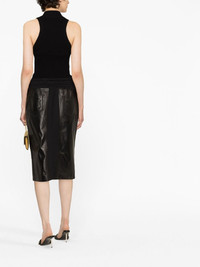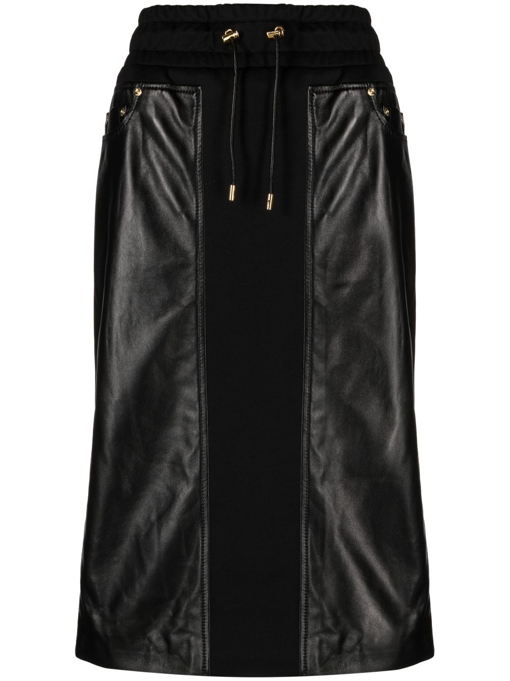 panelled leather and cotton-blend jersey midi skirt Tom Ford has a reputation for infusing casual designs like this skirt with heaps of glamour. The midi style is panelled from cotton-blend jersey and leather for a hybrid yet chic look. Take note of the metal-tipped drawstring waist. Highlights - Black - Leather - Cotton trim - Elasticated drawstring waistband - Gold-tone hardware - Below-knee length - Straight hem Made in Italy Composition Outer: Lamb Skin 100%, Cotton 69%, Silk 31% Lining: Silk 92%, Elastane 8% SIZE & FIT Model measurements Height 5 ft 10 in(1.78 m) Bust/Chest 30.7 in(78 cm) Hips 34.64 in(88 cm) Waist 23.22 in(59 cm) FittingInformation This midi-length skirt is intended to be worn just below the waist The elasticated waist allows for a comfortable fit This piece fits true to size – take your usual size Washing instructions Specialist Cleaning
