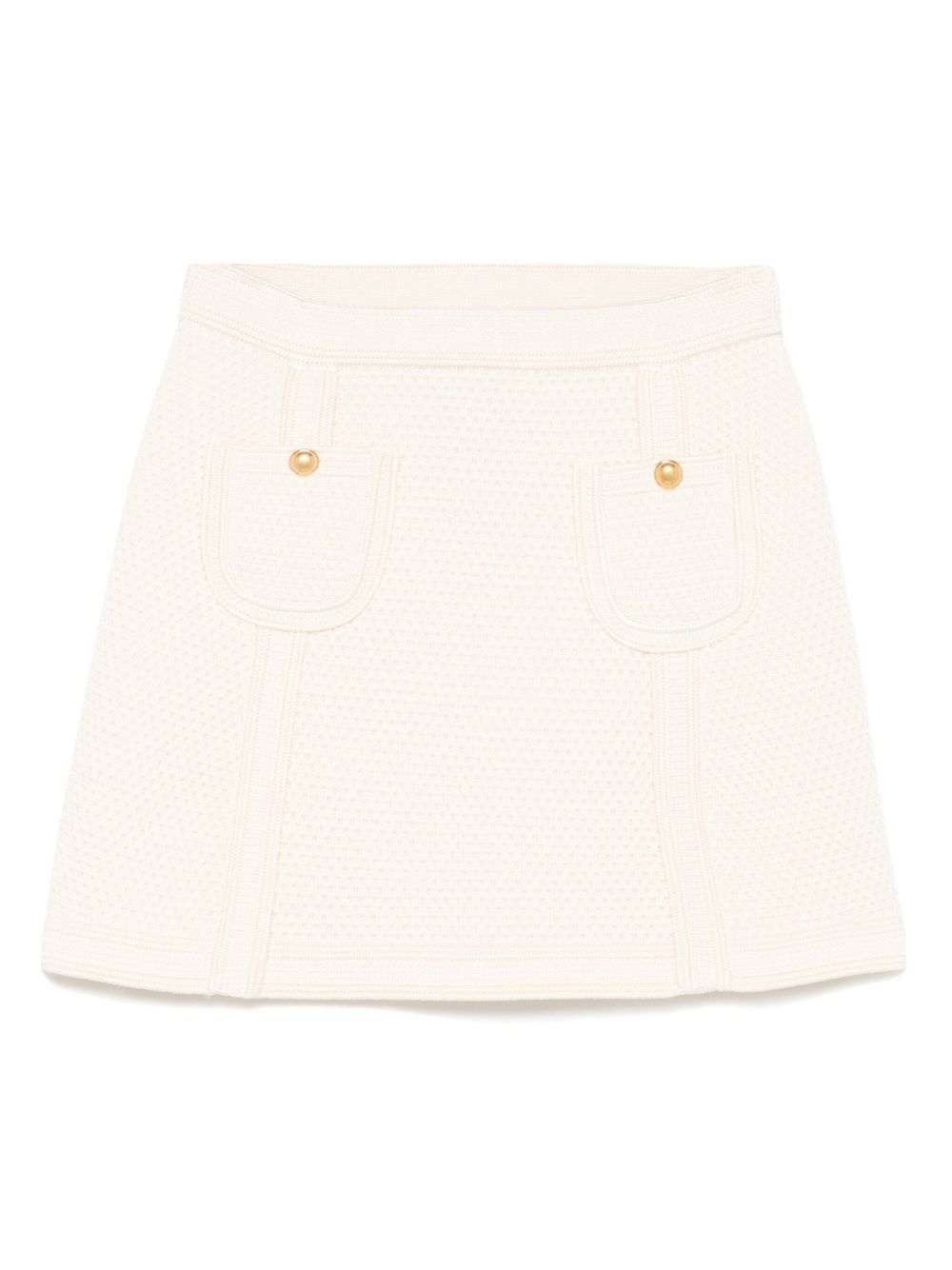 patch-pockets mini skirt Highlights - Light beige - Elasticated waistband - Unlined - Straight hem Made in Italy Composition Viscose 94%, Polyamide 6% SIZE & FIT Model measurements Height 5 ft 9 in(1.76 m) Bust/Chest 31.88 in(81 cm) Hips 35.43 in(90 cm) Waist 24.8 in(63 cm) FittingInformation This mini-length skirt is intended to be worn just below the waist The elasticated waist allows for a comfortable fit Made with a midweight knit, this piece offers some stretch