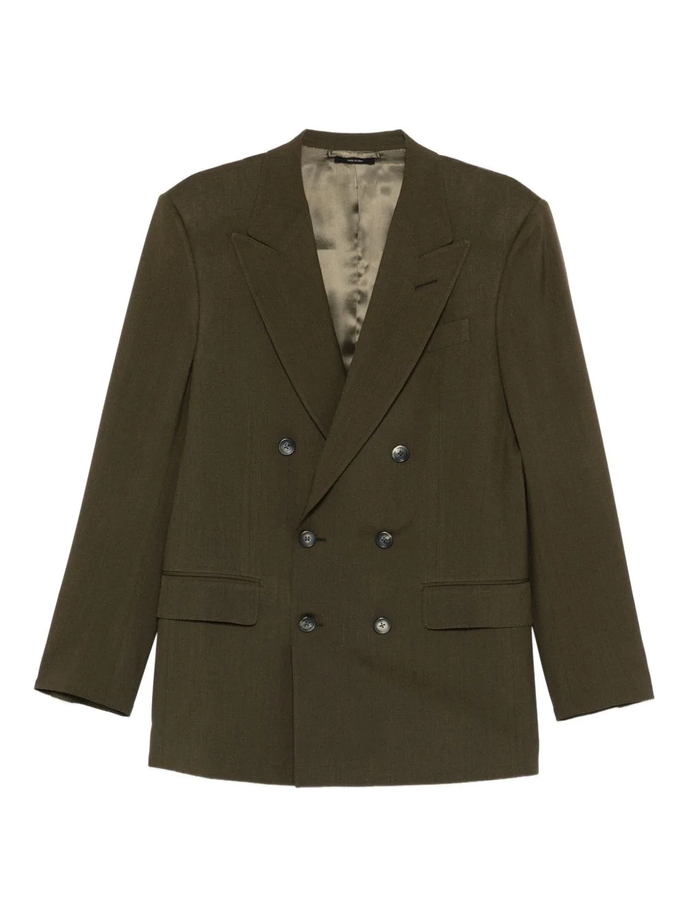 peak-lapel double-breasted blazer Highlights - Green wood - Double-breasted - Peak lapels - Button fastening - Flap pockets Made in Italy Composition Outer: Wool 61%, Cashmere 23%, Silk 16% Lining: Viscose 100% SIZE & FIT Model measurements Height 6 ft 1 in(1.86 m) Bust/Chest 35.43 in(90 cm) Hips 35.03 in(89 cm) Waist 29.13 in(74 cm) Washing instructions Dry Clean Only