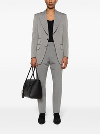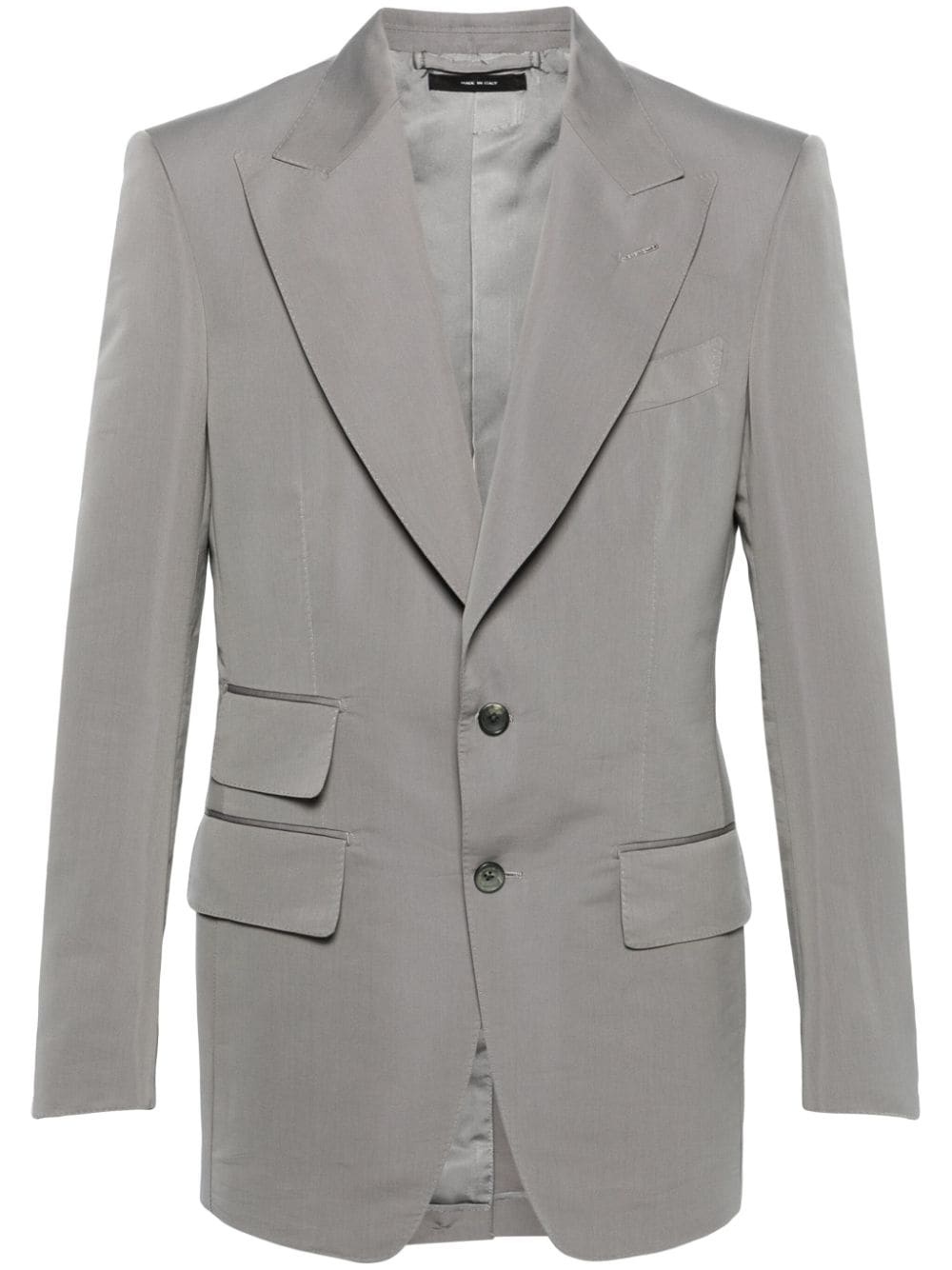 peak-lapels single-breasted blazer Highlights - Grey - Cotton-silk blend - Interlock twill weave - Dart detailing - Peak lapels - Front button fastening - Shoulder pads - Long sleeves - Split cuffs - Chest welt pocket - Three front flap pockets - American rear vent - Straight hem - Partial lining Made in Italy Composition Outer: Cotton 60%, Silk 40% Lining: Silk 50%, Cupro 50% SIZE & FIT Model measurements Height 6 ft 2 in(1.87 m) Bust/Chest 36.22 in(92 cm) Hips 37 in(94 cm) Waist 27.95 in(71 cm) FittingInformation Designed for a slim fit, offering a comfortable fit that sits just away from the body The vented hem offers movement at the rear Made from a midweight non-stretch fabric This piece fits true to size – take your usual size