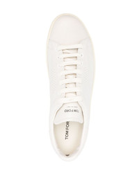 perforated-logo leather sneakers Highlights - Light beige - Calf leather - Perforated logo detail - Logo-print tongue - Branded heel counter - Round toe - Front lace-up fastening - Branded leather insole - Flat rubber sole Made in Italy Composition Sole: Rubber 100% Lining: Calf Leather 100% Outer: Calf Leather 100%