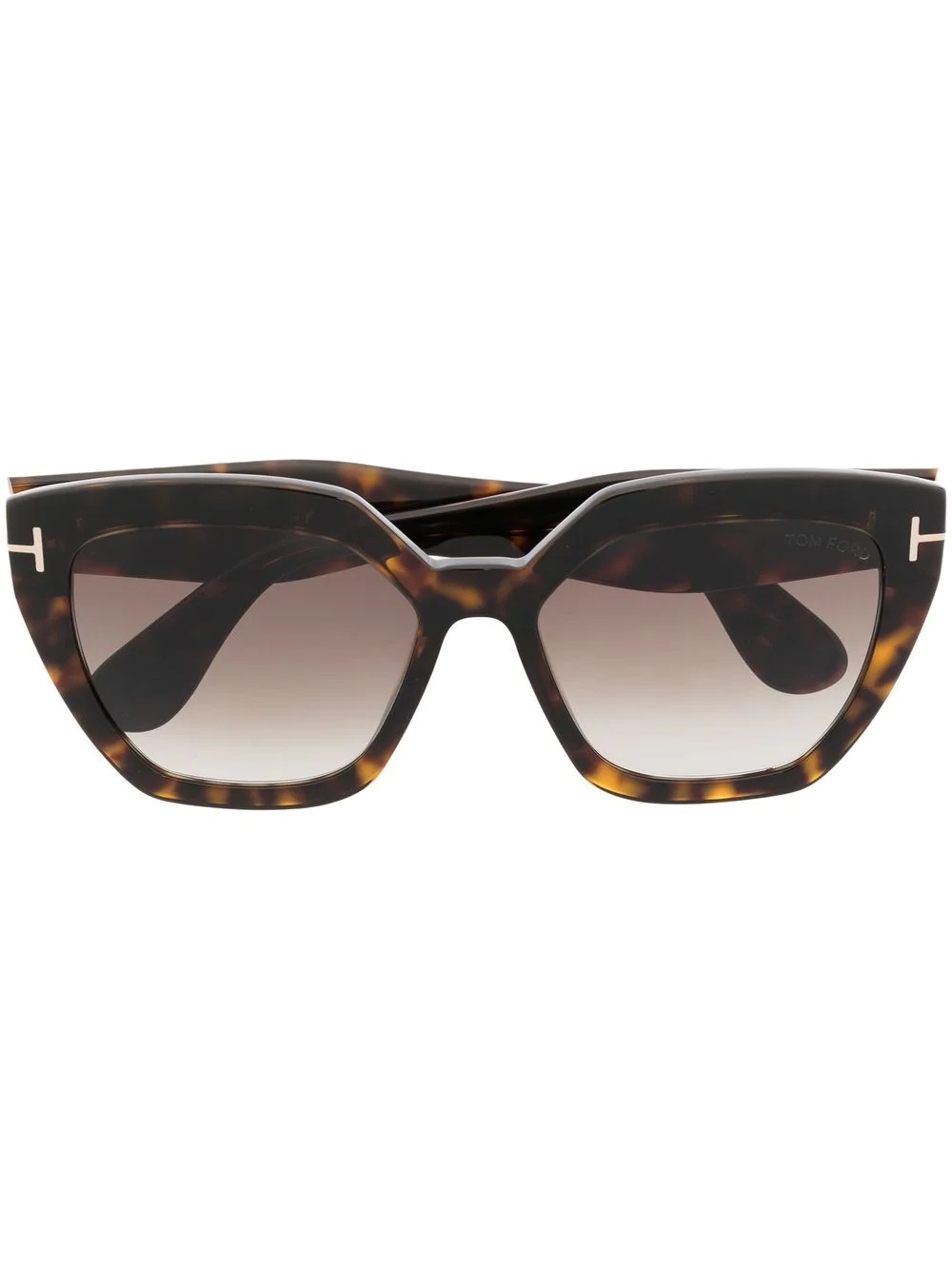 Phoebe cat-eye sunglasses brown tortoiseshell effect gradient lenses lens decal curved arms These glasses come with a protective case. Made in Italy Composition Acetate 100% SIZE & FIT Measurement Arm Length 5.51 in(14 cm) Bridge Width 0.66 in(1.7 cm) Lens Diameter 2.2 in(5.6 cm) Total Width 5.9 in(15 cm)