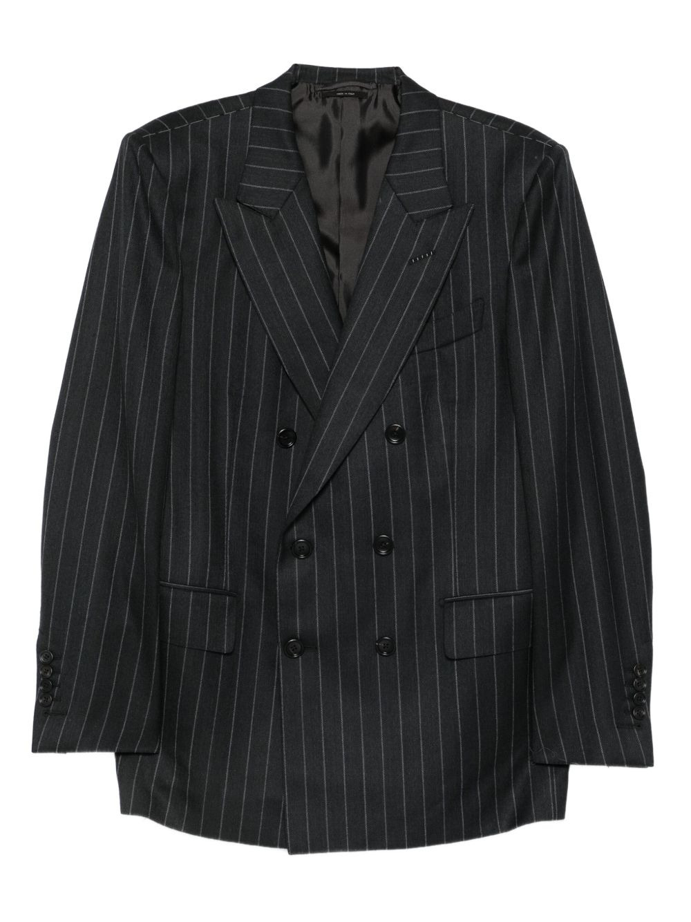 pinstripe double-breasted suit Highlights - Dark grey - Pinstripe pattern - Double-breasted closure - Peak lapels - Long sleeves - Straight trousers Made in Italy Composition Outer: Wool 100% Lining: Cotton 70%, Cupro 59%, Silk 41%, Modal 30% Washing instructions Dry Clean Only