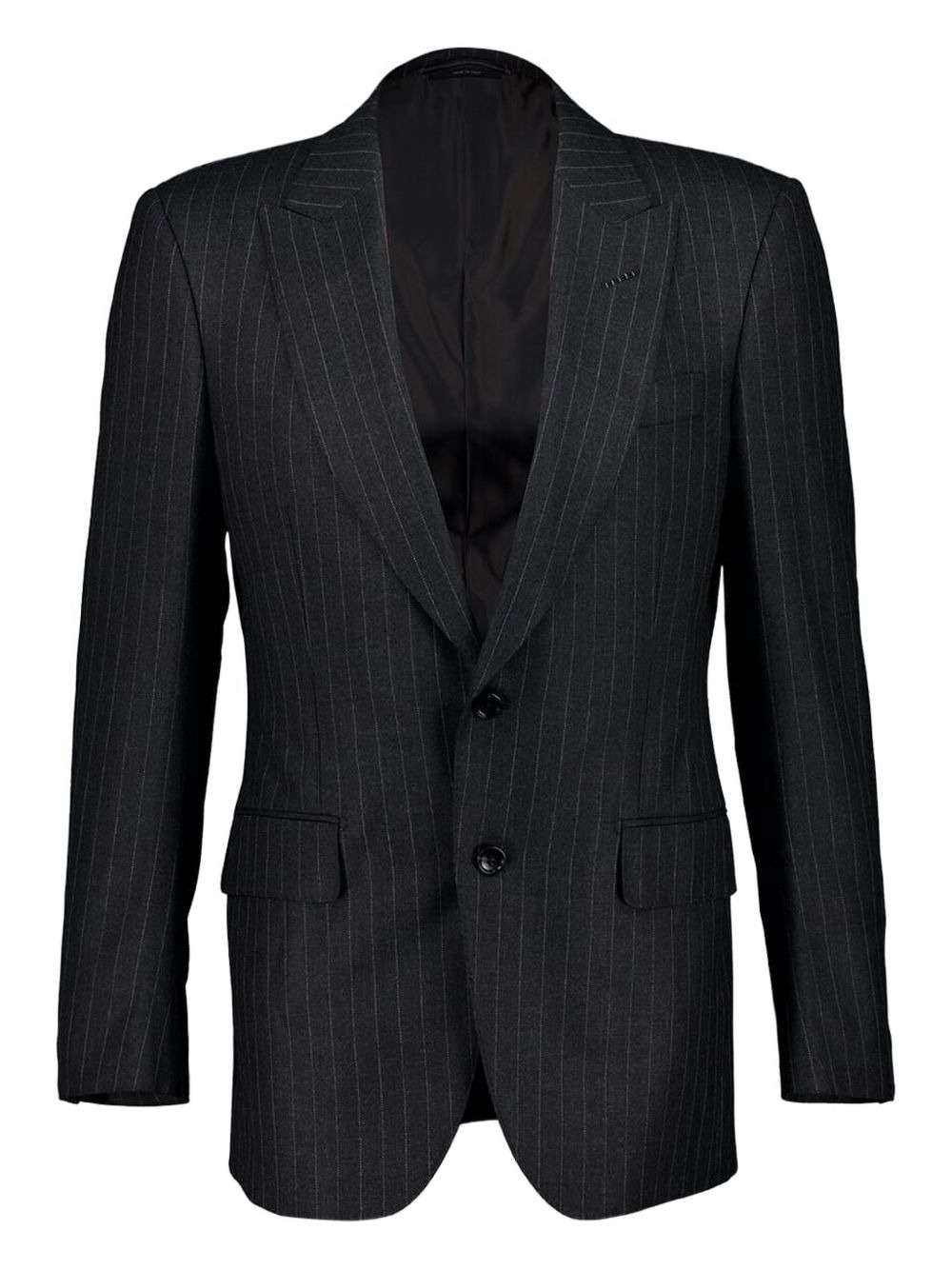 pinstripe single-breasted blazer Highlights - Dark grey - Pinstripe - Two front flap pockets - Single breasted - Button fastening - Notched lapels Imported Composition Wool 100% Washing instructions Read Manufacturer Guidelines