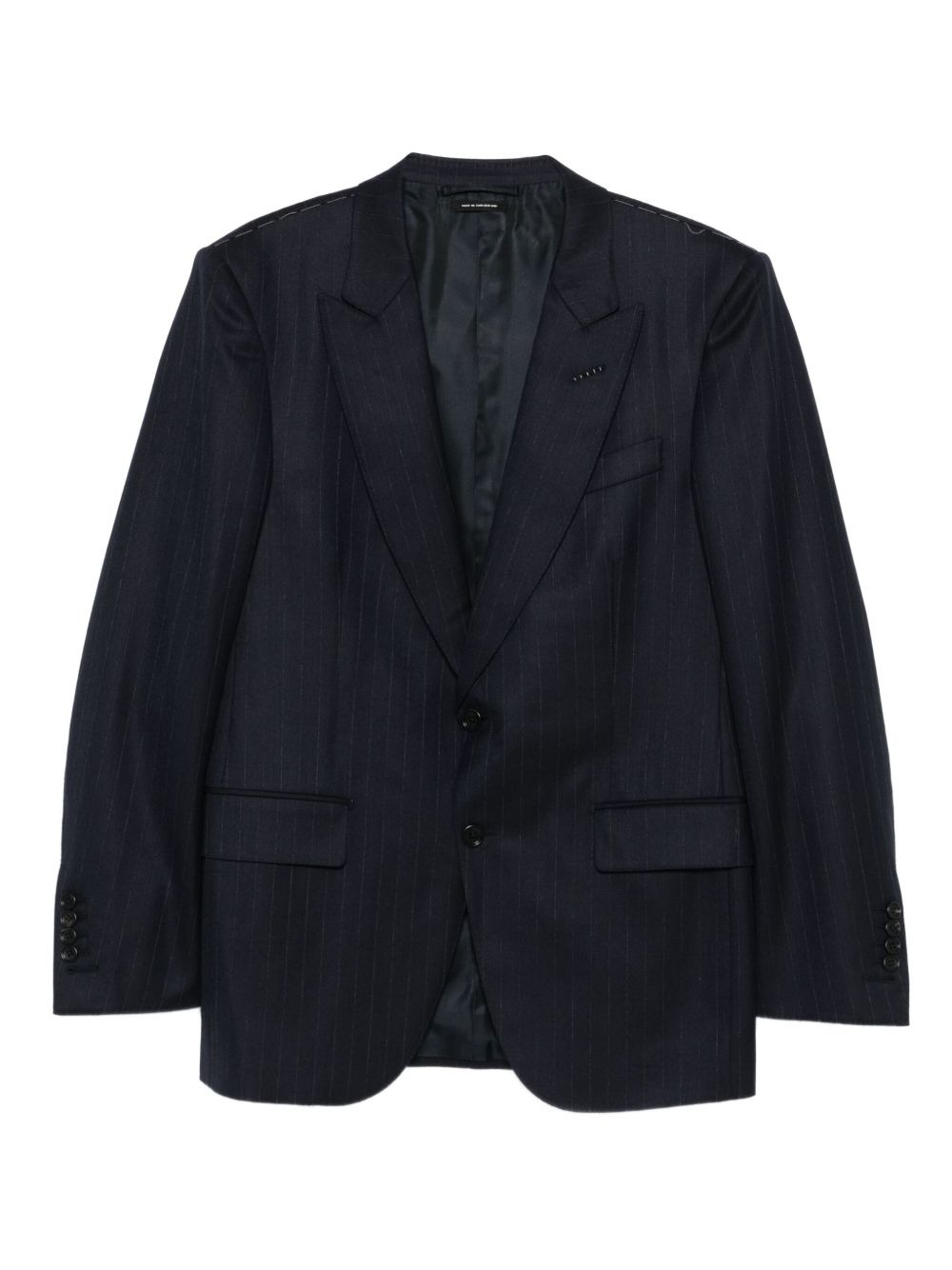 pinstripe two-button blazer Highlights - Navy blue - Pinstripe pattern - Single-breasted closure - Notched lapel - Welt-flap pockets - Button cuffs Imported Composition Fabric 100% Washing instructions Read Manufacturer Guidelines