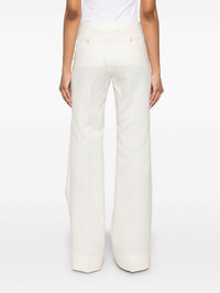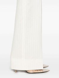 pinstriped trousers Highlights - Light beige - Concealed front button, hook and zip fastening - Belt loops - Two diagonal pockets to the sides - Two rear button-fastening jetted pockets Made in Italy Composition Outer: Wool 74%, Silk 24%, Metallised Fibres 1%, Viscose 1% Lining: Cupro 59%, Silk 41% SIZE & FIT Model measurements Height 5 ft 10 in(1.78 m) Bust/Chest 32.67 in(83 cm) Hips 35.43 in(90 cm) Waist 23.22 in(59 cm) FittingInformation Designed with a flared hem, these trousers allow for a close fit at the waist with a slim fit over the leg and widening towards the hem Made from a midweight non-stretch fabric, this piece offers minimal elasticity when worn