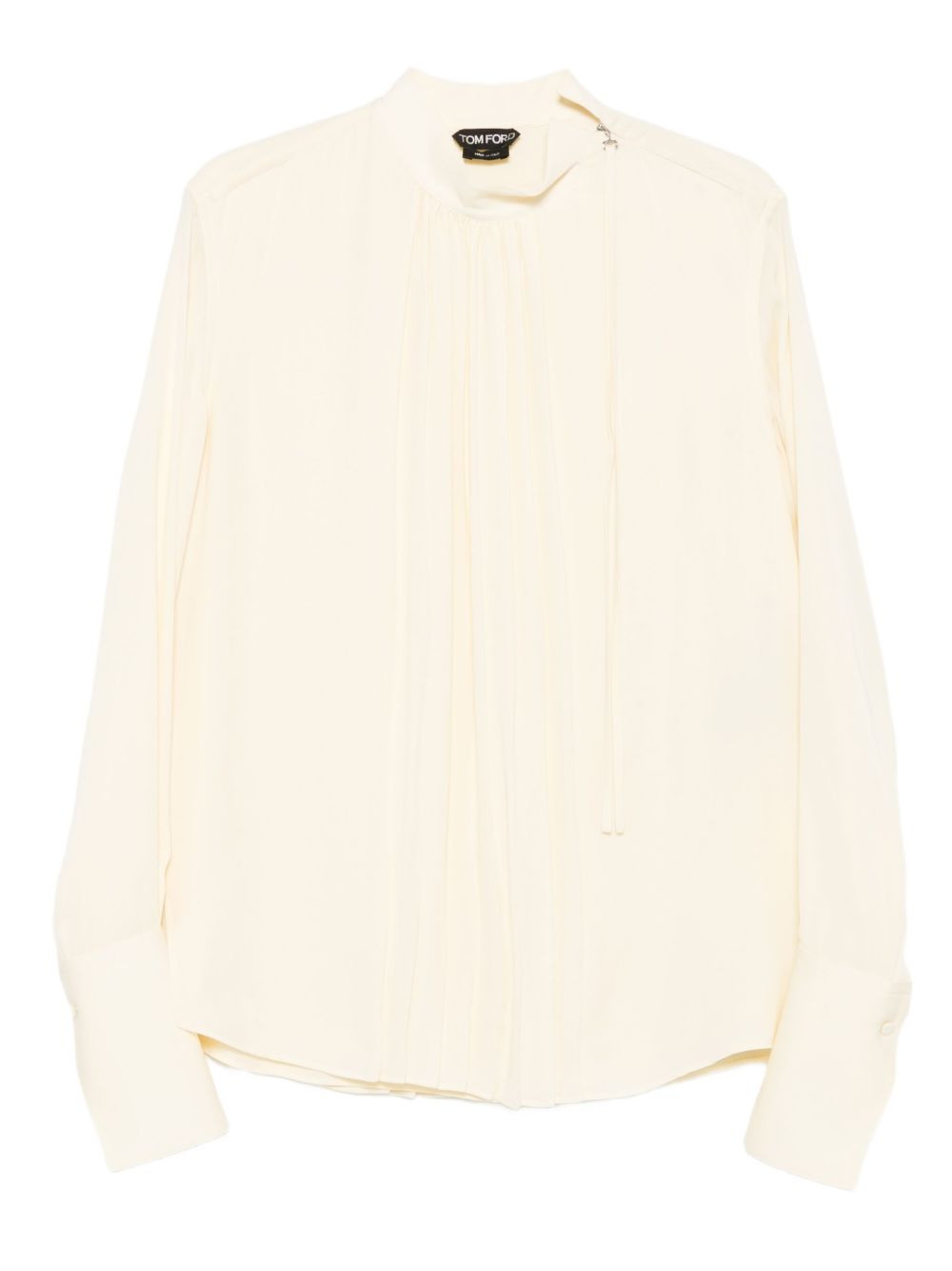 pleated high-neck top Highlights - Off-white - High neck - Pleated front - Long sleeves - Buttoned cuffs Made in Italy Composition Fabric 100% SIZE & FIT Model measurements Height 5 ft 11 in(1.8 m) Bust/Chest 31.49 in(80 cm) Hips 36.61 in(93 cm) Waist 24.4 in(62 cm) Washing instructions Read Manufacturer Guidelines