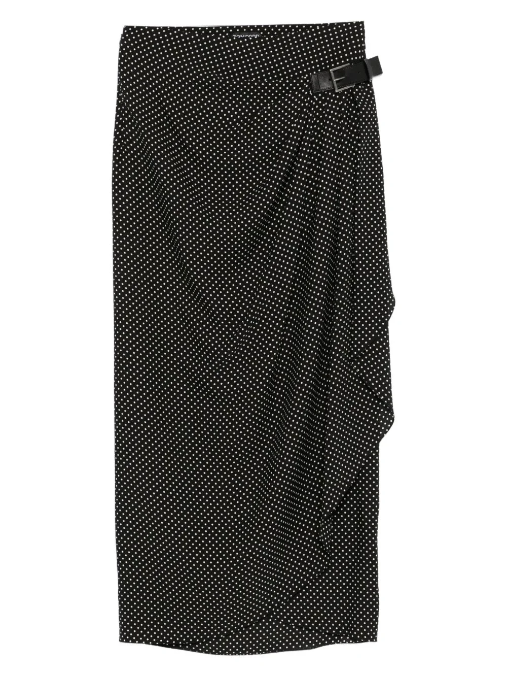 polka-dot buckled midi skirt Highlights - Black - Polka dot print - Buckle detail - Draped design - Wrap design - Pencil style Made in Italy Composition Silk 100% SIZE & FIT Model measurements Height 5 ft 10 in(1.78 m) Bust/Chest 31.49 in(80 cm) Hips 37 in(94 cm) Waist 23.62 in(60 cm) Washing instructions Dry Clean Only