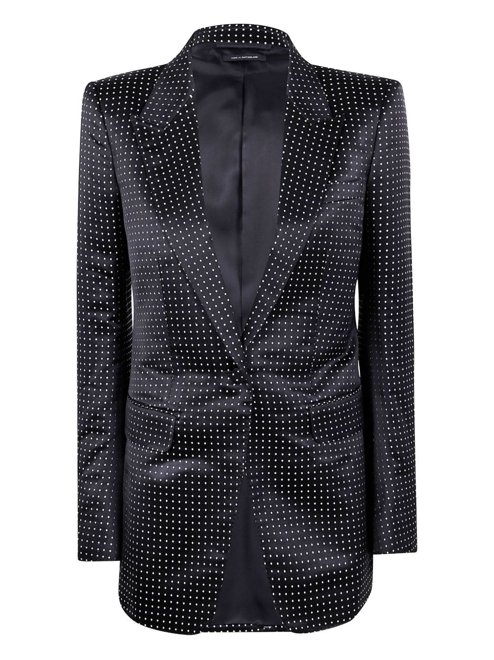 polka-dot satin jacket Highlights - Black - Silk - Polka dot pattern - Single-breasted closure - Notched lapel - Welt pockets Imported Composition Silk 100% Washing instructions Read Manufacturer Guidelines