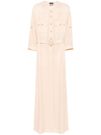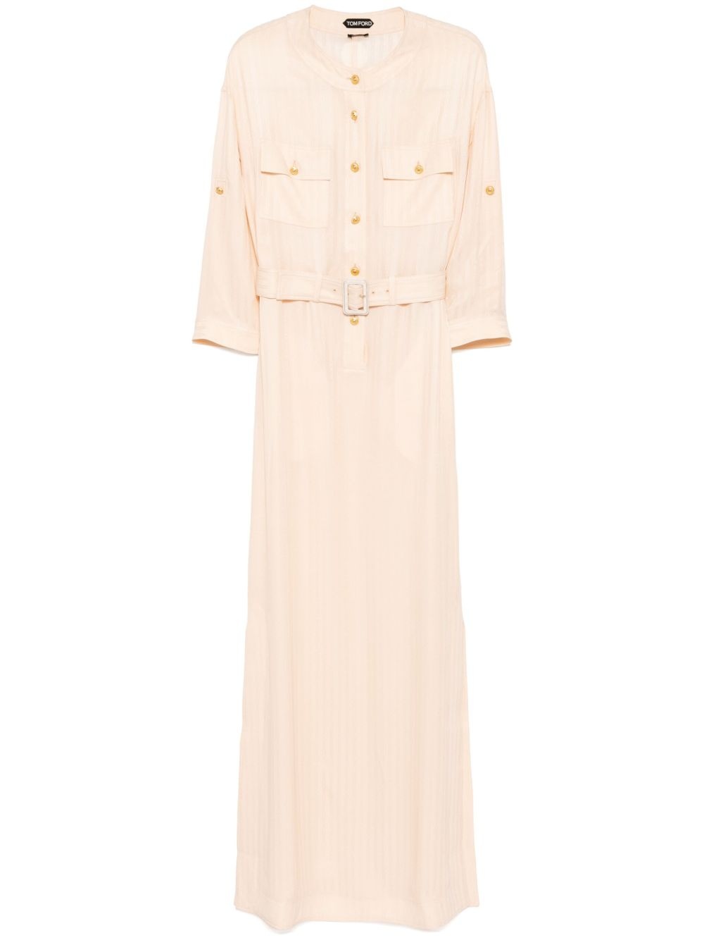 polo dress Highlights - Light peach - Button fastening - Polo collar - Two chest flap pockets - Three-quarter length sleeves Made in Italy Composition Lining: Silk 92%, Elastane 8% Outer: Silk 100% SIZE & FIT Model measurements Height 5 ft 10 in(1.78 m) Bust/Chest 32.67 in(83 cm) Hips 37 in(94 cm) Waist 25.59 in(65 cm) FittingInformation Designed to be unstructured, offering a loose fit throughout The belt offers adjustability for fitted preferences Made from a midweight non-stretch fabric