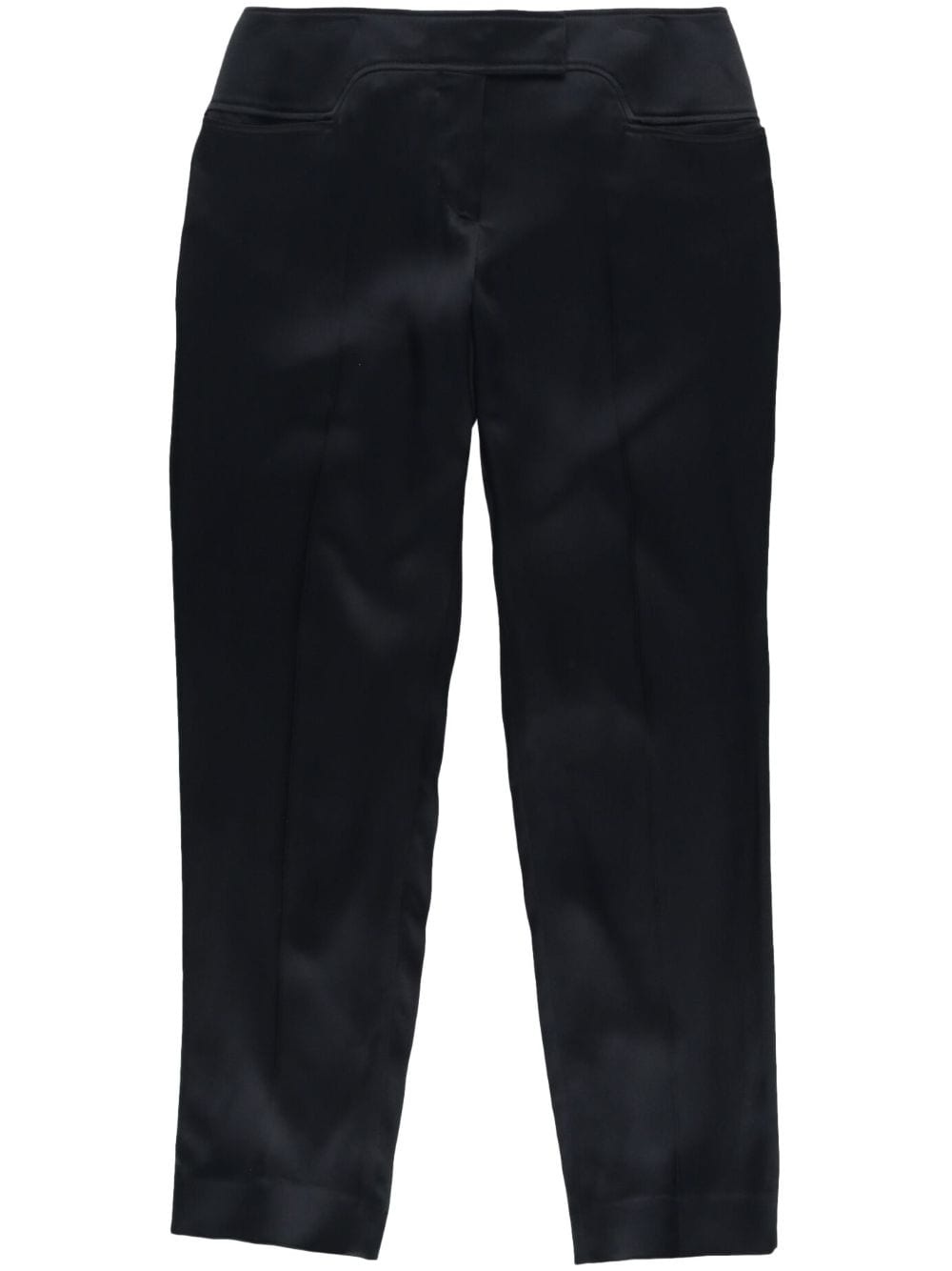 pressed-crease tapered-leg trousers Highlights - Black - Pressed crease - Panelled design - Concealed front fastening - Two front jetted pockets - Tapered leg Made in Italy Composition Acetate 65%, Viscose 35% SIZE & FIT Measurement INSIDE LEG 31.49 in(80 cm) HIPS 40.15 in(102 cm) WAIST 31.49 in(80 cm)