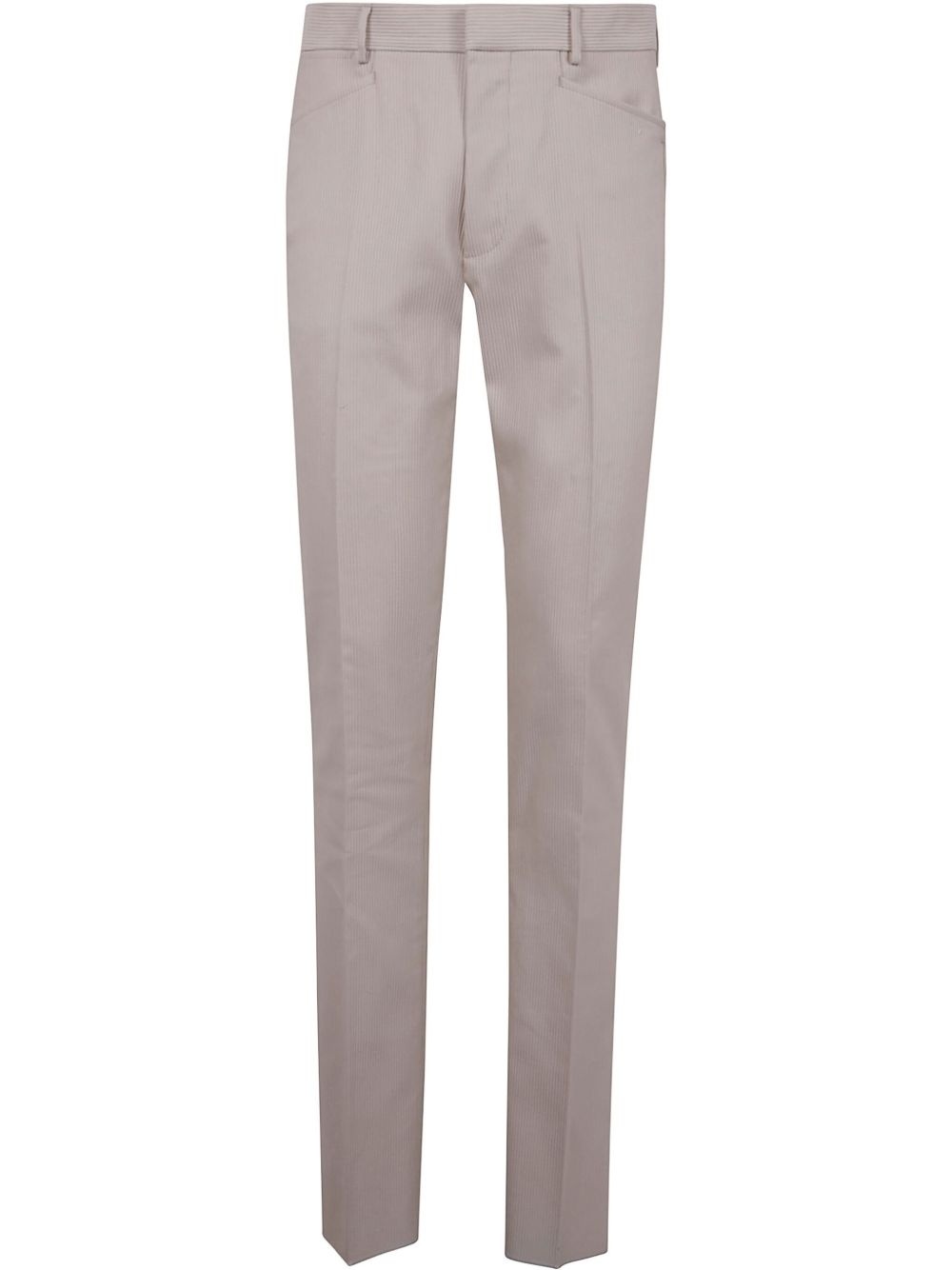 pressed crease trousers Highlights - Sand beige - Hook and zip fly fastening - Two side inset pockets - Two rear button-fastening jetted pockets - Belt loops Made in Italy Composition Cotton 100%
