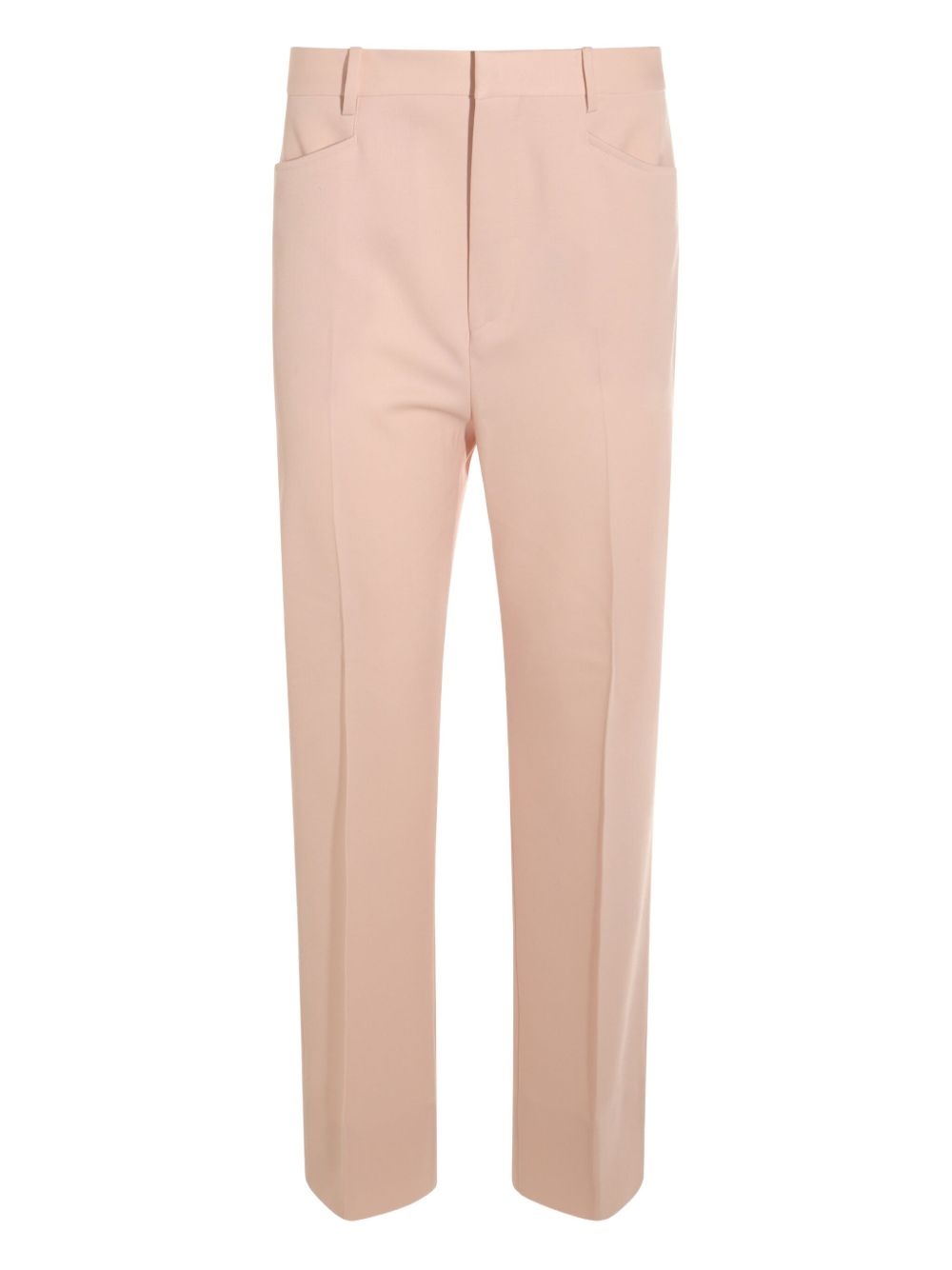 pressed-crease trousers Highlights - Blush pink - Concealed front fastening - Two side inset pockets - Two rear jetted pockets - Belt loops Imported Composition Virgin Wool 98%, Elastane 2%