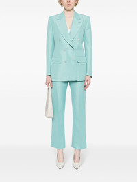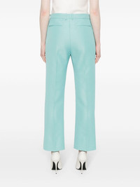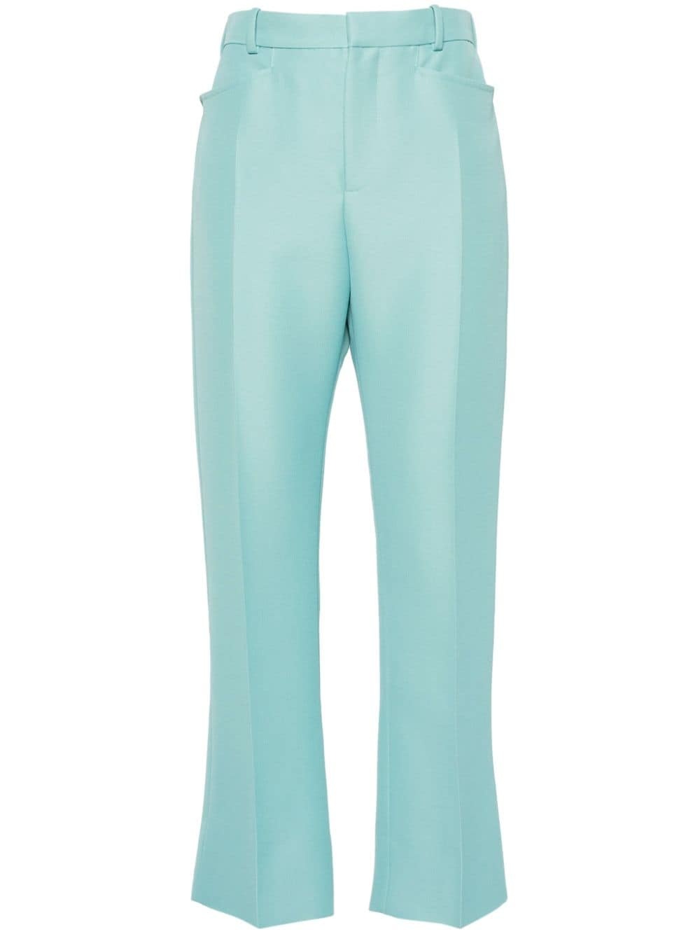 tailored straight-leg trousers Highlights - Aqua blue - Virgin wool blend - Pressed crease - Belt loops - Two side slit pockets - Two rear welt pockets - Concealed front button, hook and zip fastening Made in Italy Composition Outer: Virgin Wool 57%, Viscose 43% Lining: Cupro 50%, Silk 50% SIZE & FIT Model measurements Height 5 ft 9 in(1.75 m) Bust/Chest 34.64 in(88 cm) Hips 36.61 in(93 cm) Waist 26.37 in(67 cm) FittingInformation Designed for a straight-leg fit, these trousers allow for a close fit at the waist and an unrestricted, comfortable fit over the leg Made from a midweight non-stretch fabric This piece fits true to size – take your usual size