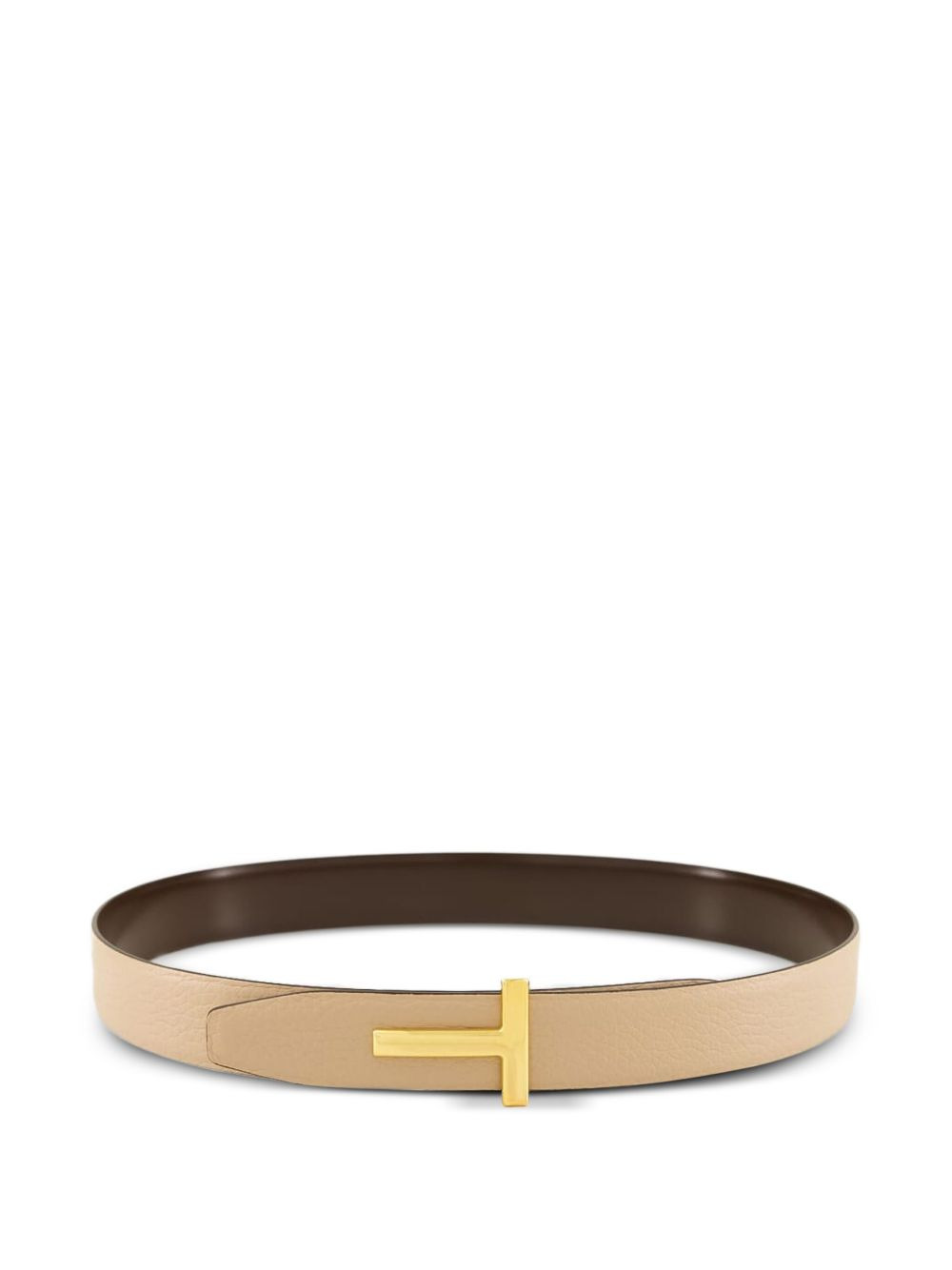 reversible T-buckle leather belt Highlights - Light beige - Calf leather - 30mm width - Gold-tone buckle - T-shaped buckle - Reversible design Made in Italy Composition Calf Leather 100% SIZE & FIT Measurement WIDTH 1.18 in(3 cm)
