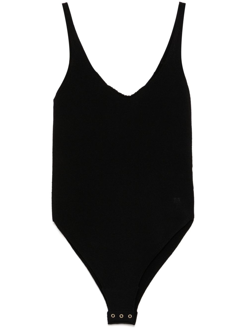 ribbed knit bodysuit Highlights - Black - V-neck - Sleeveless - Just a reminder that this piece must be tried on over your own garments. Made in Italy Composition Viscose 83%, Polyester 17% SIZE & FIT Model measurements Height 5 ft 10 in(1.77 m) Bust/Chest 31.49 in(80 cm) Hips 35.43 in(90 cm) Waist 25.19 in(64 cm)