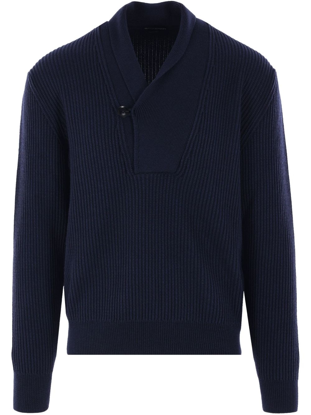 Slim-Fit Shawl-Collar Ribbed Merino Wool-Blend Half-Placket Sweater Navy
