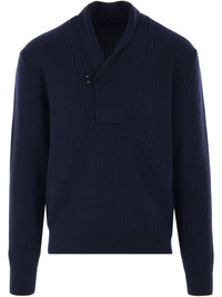 ribbed-knit jumper Highlights - Navy blue - Front button fastening - Long sleeves - Straight hem Made in Italy Composition Wool 70%, Silk 30% SIZE & FIT FittingInformation Designed for a relaxed fit, this piece allows for comfort and movement when worn The ribbed hem offers a close, comfortable fit Made with a midweight knit, this piece offers some stretch Washing instructions Read Manufacturer Guidelines