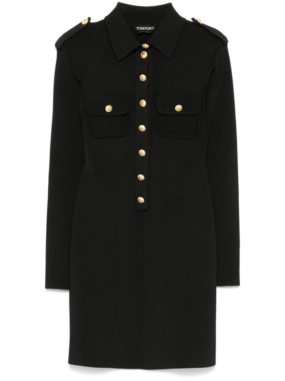 ribbed mini dress Highlights - Black - Stretch-design - Fine ribbed - Short front button placket - Classic collar - Epaulettes - Long sleeves - Two button-fastening chest pockets - Unlined - Straight hem - Thigh-length Made in Italy Composition Viscose 67%, Polyamide 31%, Polyurethane 2% SIZE & FIT Model measurements Height 5 ft 11 in(1.8 m) Bust/Chest 31.49 in(80 cm) Hips 36.61 in(93 cm) Waist 24.4 in(62 cm) FittingInformation Designed for a slim fit that sits just away from the body offering a close yet comfortable fit The internal shoulder pads offer a structured shape Made with a midweight knit, this piece offers some stretch