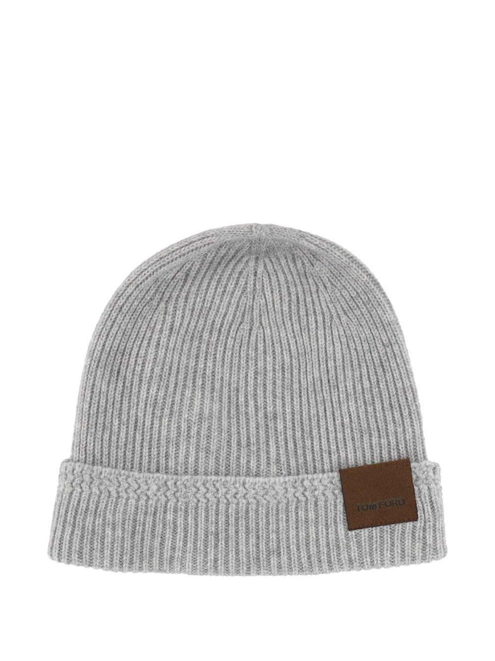 ribbed patch beanie Highlights - Sky grey - Ribbed knit - Logo patch - Turn-up brim Made in Italy Composition Cashmere 100%
