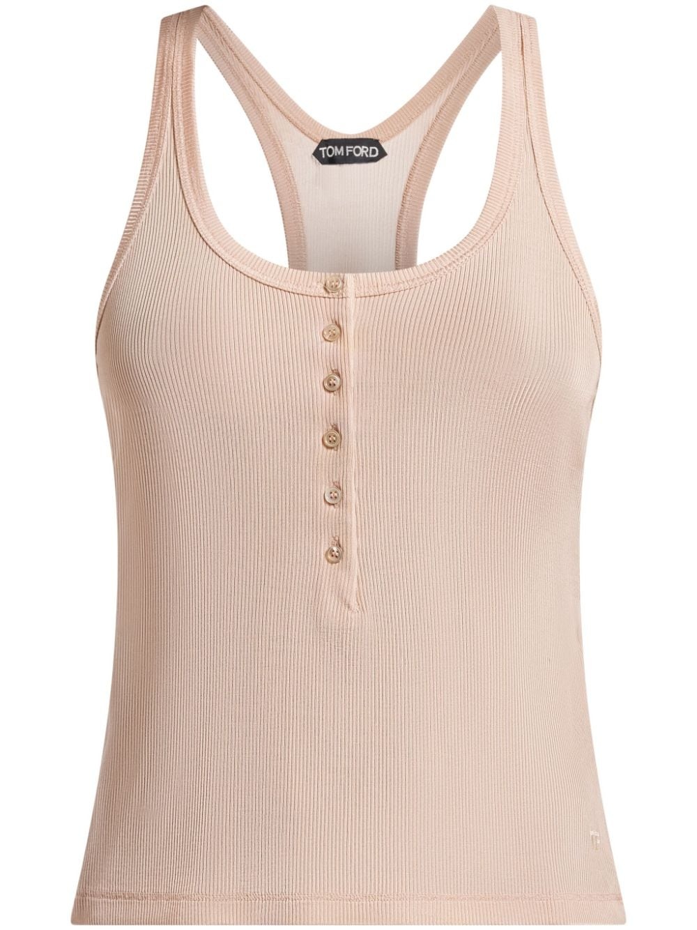 ribbed tank top Highlights - Light pink - Ribbed detailing - Round neck - Front button placket - Sleeveless - Straight hem Made in Italy Composition Viscose 95%, Spandex/Elastane 5%