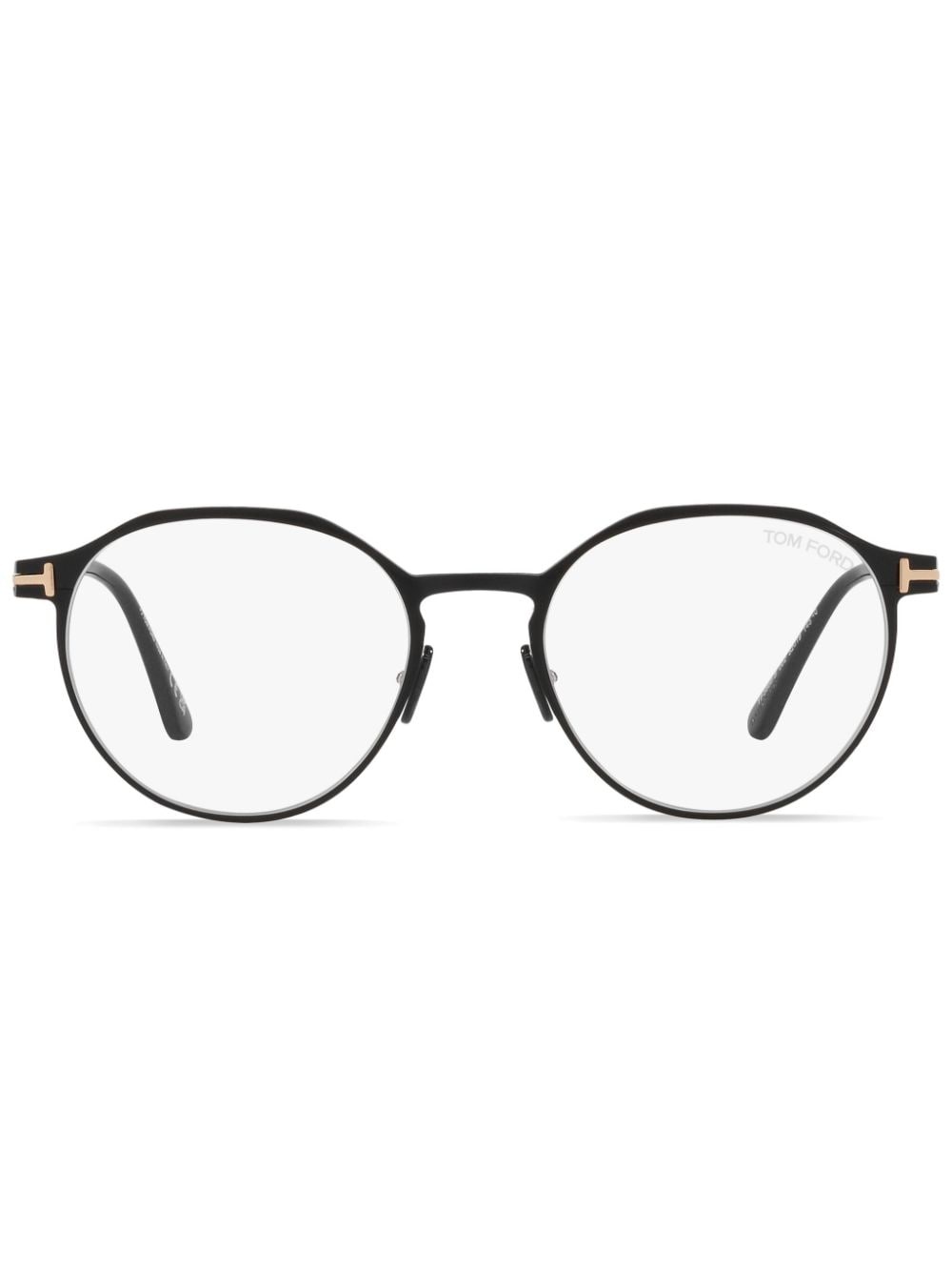 round-frame raised-bridge glasses Highlights - Jet black - Metal/acetate - Round frame - Clear lenses - Gold-tone hardware - Raised bridge - Nose pads - Straight arms - Curved tips - These glasses come with a protective case. Made in United States Composition Metal 100%, Acetate 100% SIZE & FIT Measurement Arm Length 5.7 in(14.5 cm) Bridge Width 0.74 in(1.9 cm) Lens Diameter 2.04 in(5.2 cm)