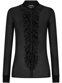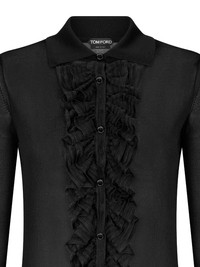 ruffle-panel long-sleeve shirt Highlights - Black - Spread collar - Front button fastening - Long sleeves - Ruffled detailing - Straight hem Made in Italy Composition Mother of Pearl 100%, Viscose 100% SIZE & FIT FittingInformation Designed for a slim fit that sits just away from the body offering a close yet comfortable fit Made with a midweight knit, this piece offers some stretch
