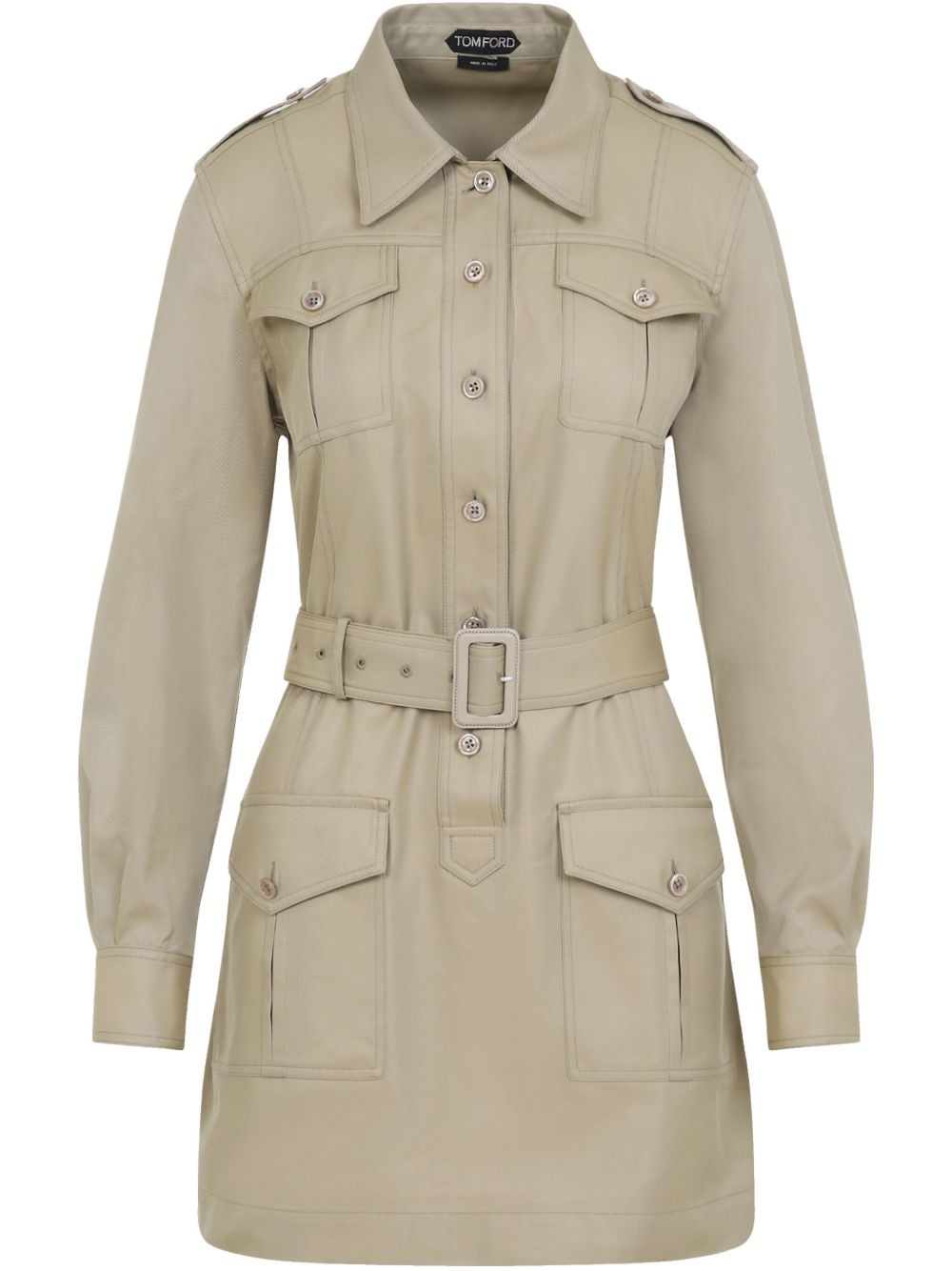 Safari dress Highlights - Sesame beige - Front button fastening - Classic collar - Two button-fastening chest pockets - Belted waist Made in Italy Composition Cotton 100%