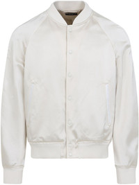 satin bomber jacket Highlights - White - Front press-stud fastening - Two side welt pockets - Long sleeves - Ribbed cuffs and hem Made in Italy Composition Viscose 100% Washing instructions Read Manufacturer Guidelines