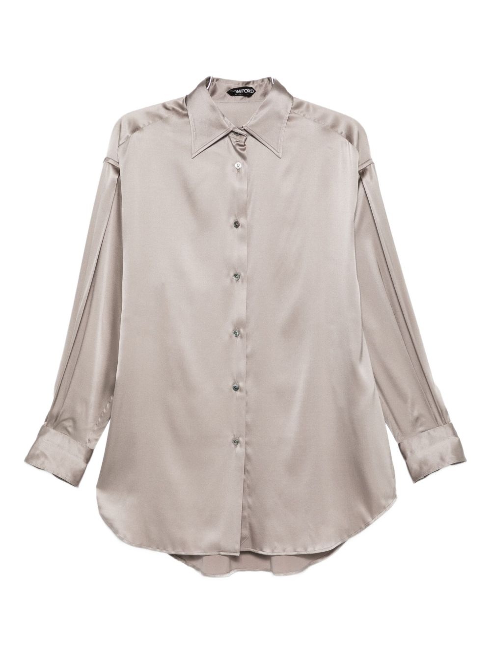 satin shirt Highlights - Light grey - Front button fastening - Buttoned-cuff sleeves - Pointed flat collar - Curved hem Made in Italy Composition Silk 94%, Elastane 6% SIZE & FIT FittingInformation Designed to be unstructured, offering a loose fit throughout Made from a midweight stretch fabric, this piece offers elasticity and flexibility when worn Washing instructions Dry Clean Only