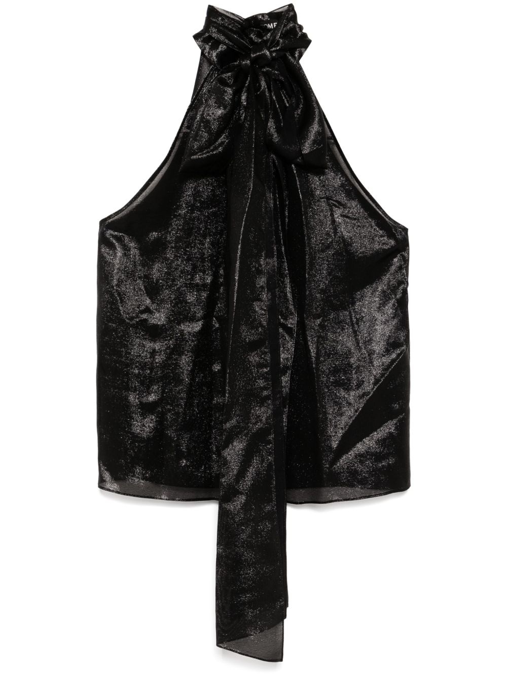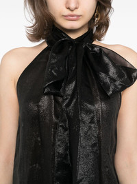 scarf-detail top Highlights - Black - Semi-sheer construction - Glitter detailing Made in Italy Composition Silk 100% SIZE & FIT Model measurements Height 5 ft 10 in(1.78 m) Bust/Chest 24.4 in(62 cm) Hips 35.43 in(90 cm) Waist 31.88 in(81 cm) FittingInformation Designed for a slim fit that sits just away from the body offering a close yet comfortable fit Made from a midweight non-stretch fabric