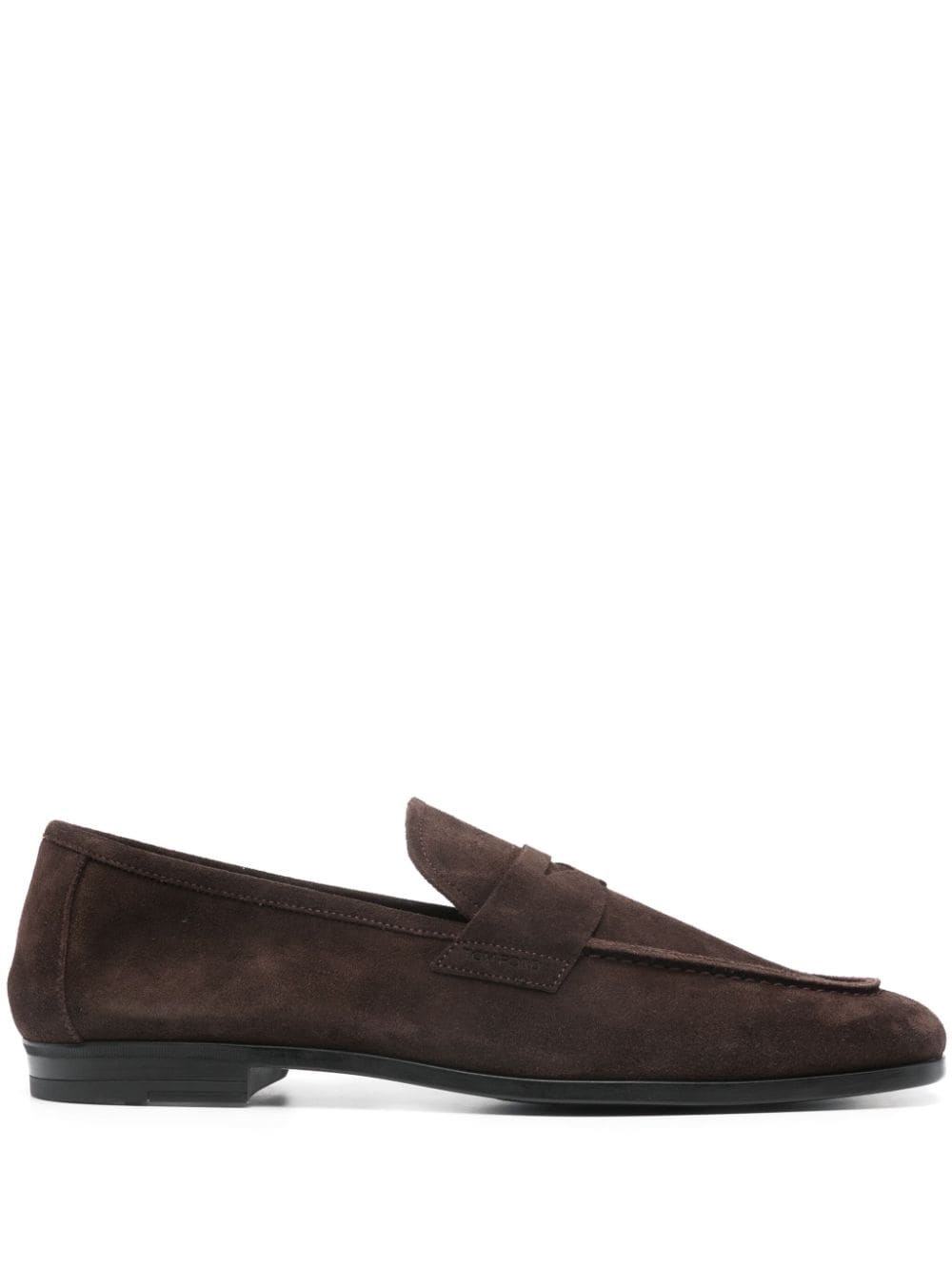 Sean penny-slot suede loafers TOM FORD's affinity for elevated elegance is captured in the sleek silhouette of these brown loafers. They're made from sumptuous suede in Italy and boast a classic penny slot. Highlights - Brown - Calf suede - Penny slot - Round toe - Branded leather insole - Flat rubber sole - Slip-on style Made in Italy Composition Outer: Calf Suede 100% Lining: Calf Leather 100% Sole: Rubber 100% SIZE & FIT Measurement HEEL 0.59 in(1.5 cm)