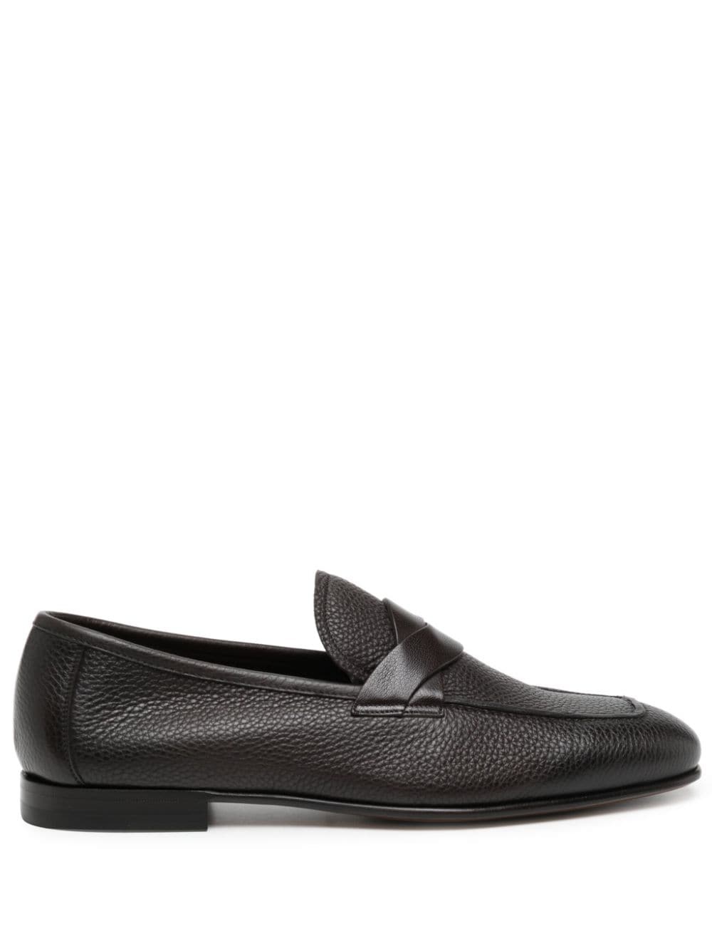 Sean twist-detail leather loafers TOM FORD's affinity for elevated elegance is captured in the sleek silhouette of these brown loafers. They're made from grained leather in Italy and boast a twist detailing at the vamp. Highlights - Brown - Calf leather - Grained texture - Burnished finish - Twist detailing - Round toe - Branded insole - Low stacked heel - Slip-on style Made in Italy Composition Lining: Leather 100% Outer: Leather 100% Sole: Leather 100% SIZE & FIT Measurement HEEL 0.59 in(1.5 cm)