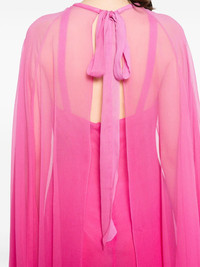 semi-sheer dress Highlights - Fuchsia pink - Front hook and eye fastening - Keyhole neck - Hanging sleeves - Flared hem Made in Italy Composition Silk 100% SIZE & FIT Model measurements Height 5 ft 10 in(1.78 m) Bust/Chest 32.67 in(83 cm) Hips 37 in(94 cm) Waist 25.59 in(65 cm) FittingInformation Designed to be unstructured, offering a loose fit throughout Made from a midweight non-stretch fabric