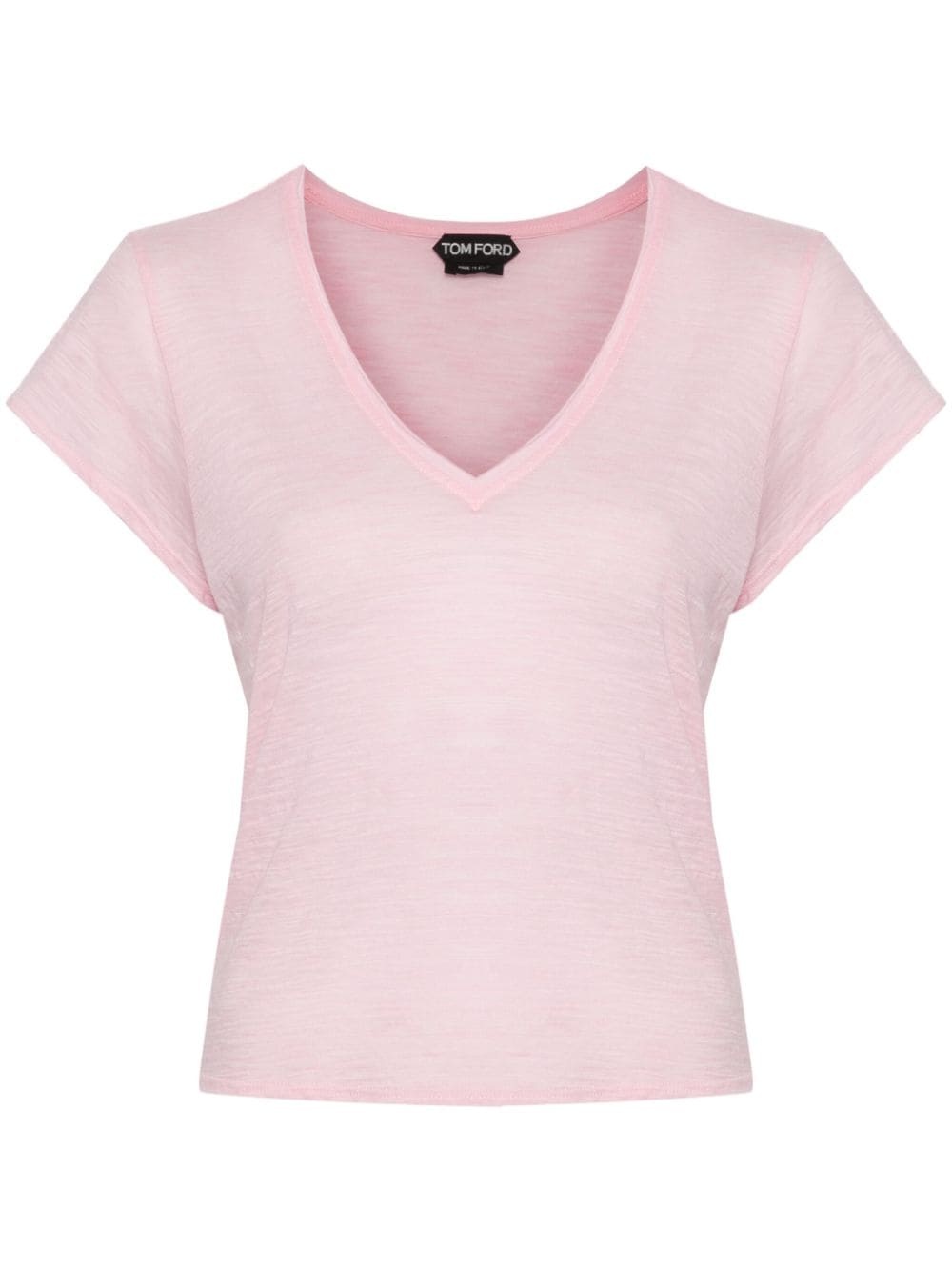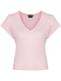 semi-sheer slub T-shirt Highlights - Light pink - Cotton blend - Soft jersey - Slub texture - Semi-sheer construction - Lightweight - V-neck - Short sleeves - Gold-tone logo plaque - Short side slits - Straight hem - Pull-on style Made in Italy Composition Cotton 68%, Polyester 32% SIZE & FIT Model measurements Height 5 ft 9 in(1.76 m) Bust/Chest 31.88 in(81 cm) Hips 35.43 in(90 cm) Waist 22.44 in(57 cm) FittingInformation Designed for a relaxed fit, this piece allows for comfort and movement when worn Made from a lightweight non-stretch fabric, this piece offers minimal elasticity when worn This piece fits true to size – take your usual size Washing instructions Hand Wash