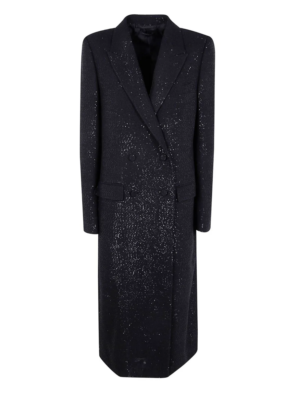 SEQUINED WOOL BLEND CREPE DOUBLE BREASTED COAT