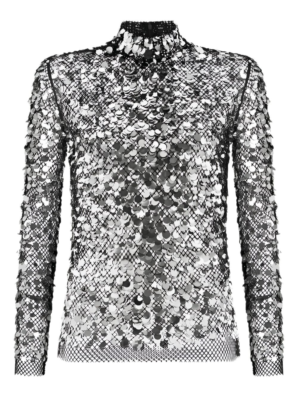 sequin-embellished top Highlights - Silver-tone - Concealed rear zip fastening - Mock neck - Long sleeves Made in Italy Composition Nylon 100%, Polyester 100%, Polyamide 100%
