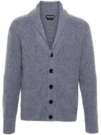 shawl-collar ribbed cardigan