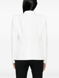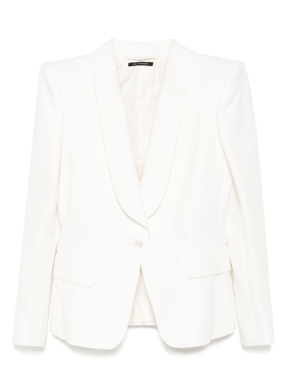 shawl-lapels single-breasted blazer Highlights - White - Front button fastening - Two front flap pockets - Buttoned cuffs - American rear vent Imported Composition Outer: Cotton 66%, Silk 22% Lining: Cupro 59%, Silk 41% SIZE & FIT Model measurements Height 5 ft 10 in(1.77 m) Bust/Chest 30.7 in(78 cm) Hips 35.82 in(91 cm) Waist 21.25 in(54 cm) FittingInformation Designed for a slim fit that sits just away from the body offering a close yet comfortable fit The internal shoulder pads offer a structured shape Made from a midweight non-stretch fabric