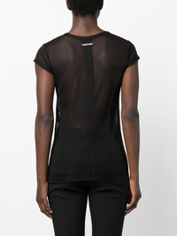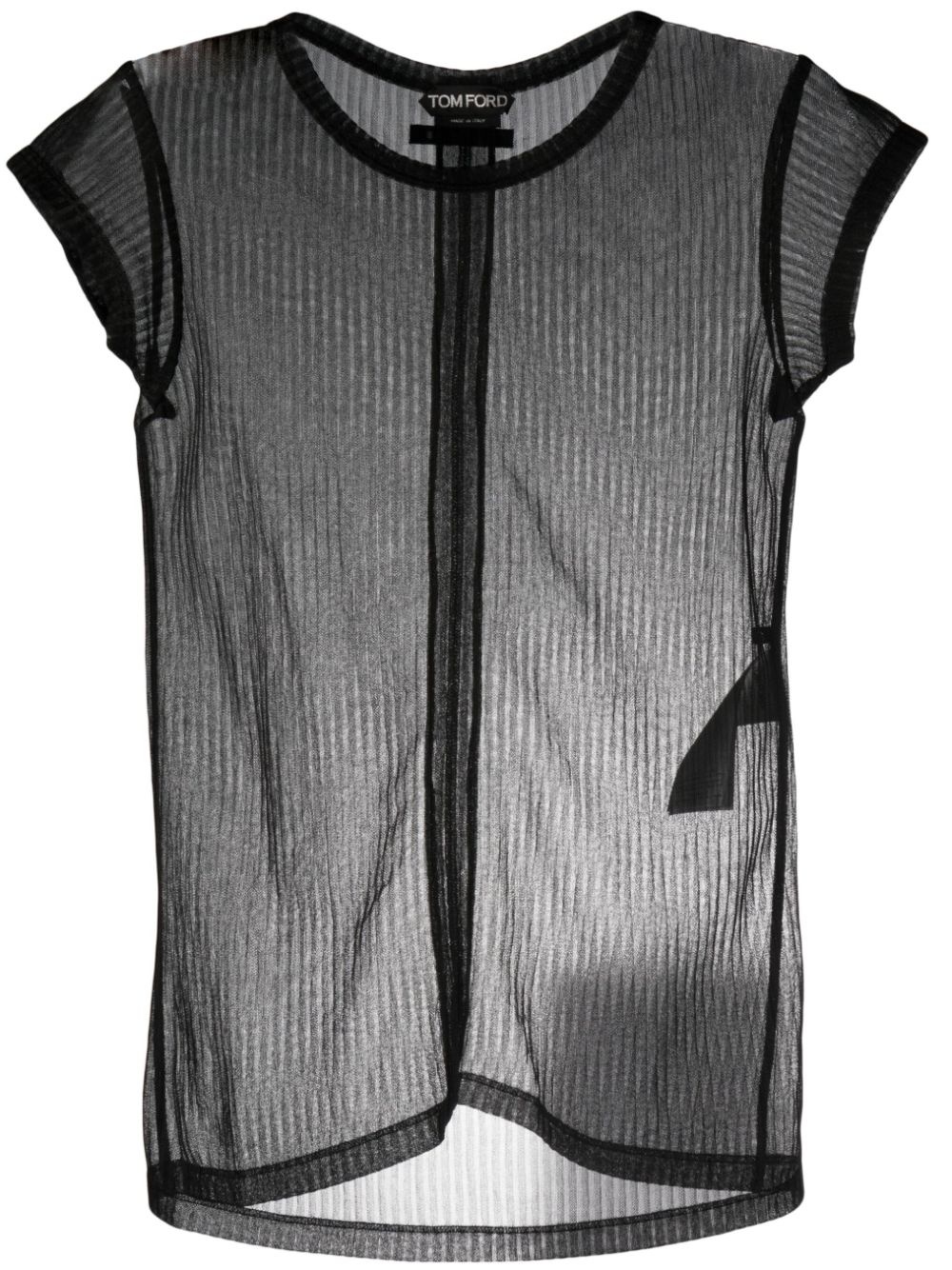 sheer crewneck T-shirt Tom Ford elevates the classic crewneck T-shirt design with this semi-sheer construction, imagined in a timeless black hue. The logo patch offers a subtle branded touch to the garment. Highlights - Black - Semi-sheer construction - Logo patch to the rear - Crew neck - Short sleeves - Rear curved hem Made in Italy Composition Polyamide 100% SIZE & FIT Model measurements Height 5 ft 10 in(1.77 m) Bust/Chest 32.28 in(82 cm) Hips 35.03 in(89 cm) Waist 25.19 in(64 cm) Measurement SLEEVE LENGTH 1.57 in(4 cm) LENGTH 24.8 in(63 cm) WAIST 30.7 in(78 cm) BUST 31.49 in(80 cm) FittingInformation Designed for a slim fit that sits just away from the body offering a close yet comfortable fit Made from a lightweight non-stretch fabric, this piece offers minimal elasticity when worn This piece fits true to size – take your usual size Washing instructions Machine Wash