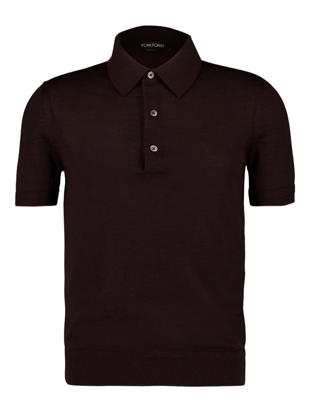 short-sleeve polo shirt Highlights - Dark brown - Short sleeves - Polo collar - Short front button fastening Made in Italy Composition Mother of Pearl 100%, Cashmere 70%, Silk 30% SIZE & FIT FittingInformation Designed for a slim fit, this polo shirt offers a comfortable fit that sits just away from the body The ribbed hem offers a close, comfortable fit Made with a fine knit, this piece offers some stretch Washing instructions Read Manufacturer Guidelines