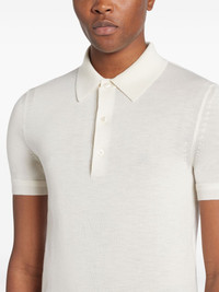 short sleeve polo shirt Highlights - White - Front button placket - Classic collar - Short sleeves - Straight hem Made in Italy Composition Mother of Pearl 100%, Cashmere 70%, Silk 30% SIZE & FIT FittingInformation Designed for a regular fit, this polo shirt offers a comfortable loose fit throughout the body The ribbed hem offers a close, comfortable fit Made with a lightweight knit, this piece offers some stretch