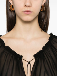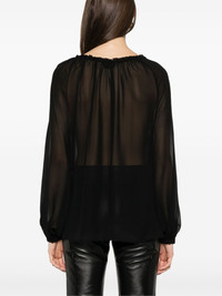 silk blouse Highlights - Black - Buttoned cuffs - Gathered tie neck - Plunging v-neck Made in Italy Composition Acetate 100%, Silk 100% SIZE & FIT Model measurements Height 5 ft 10 in(1.78 m) Bust/Chest 33.85 in(86 cm) Hips 36.61 in(93 cm) Waist 26.77 in(68 cm) FittingInformation Designed to be unstructured, offering a loose fit throughout Made from a lightweight non-stretch fabric