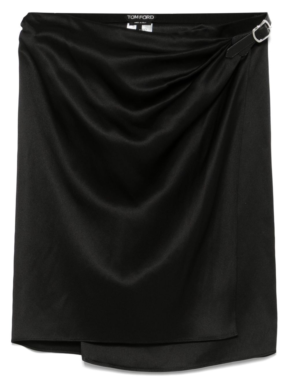 silk mini skirt Highlights - Black - Side buckle fastening - Pleat detailing - Overlapping panel Made in Italy Composition Outer: Silk 100% Lining: Cotton 50%, Viscose 50% SIZE & FIT Model measurements Height 5 ft 10 in(1.78 m) Bust/Chest 32.67 in(83 cm) Hips 35.43 in(90 cm) Waist 23.22 in(59 cm) FittingInformation Designed for a wraparound style that can be adjusted to your preference Made from a midweight non-stretch fabric