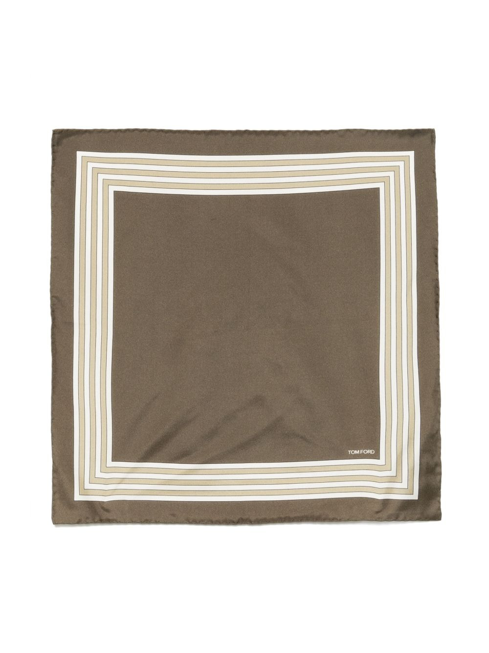 silk pocket square Highlights - Olive green - Square shape - Solid border - Stripe print Made in Italy Composition Silk 100% SIZE & FIT Measurement LENGTH 15.74 in(40 cm) WIDTH 15.74 in(40 cm)