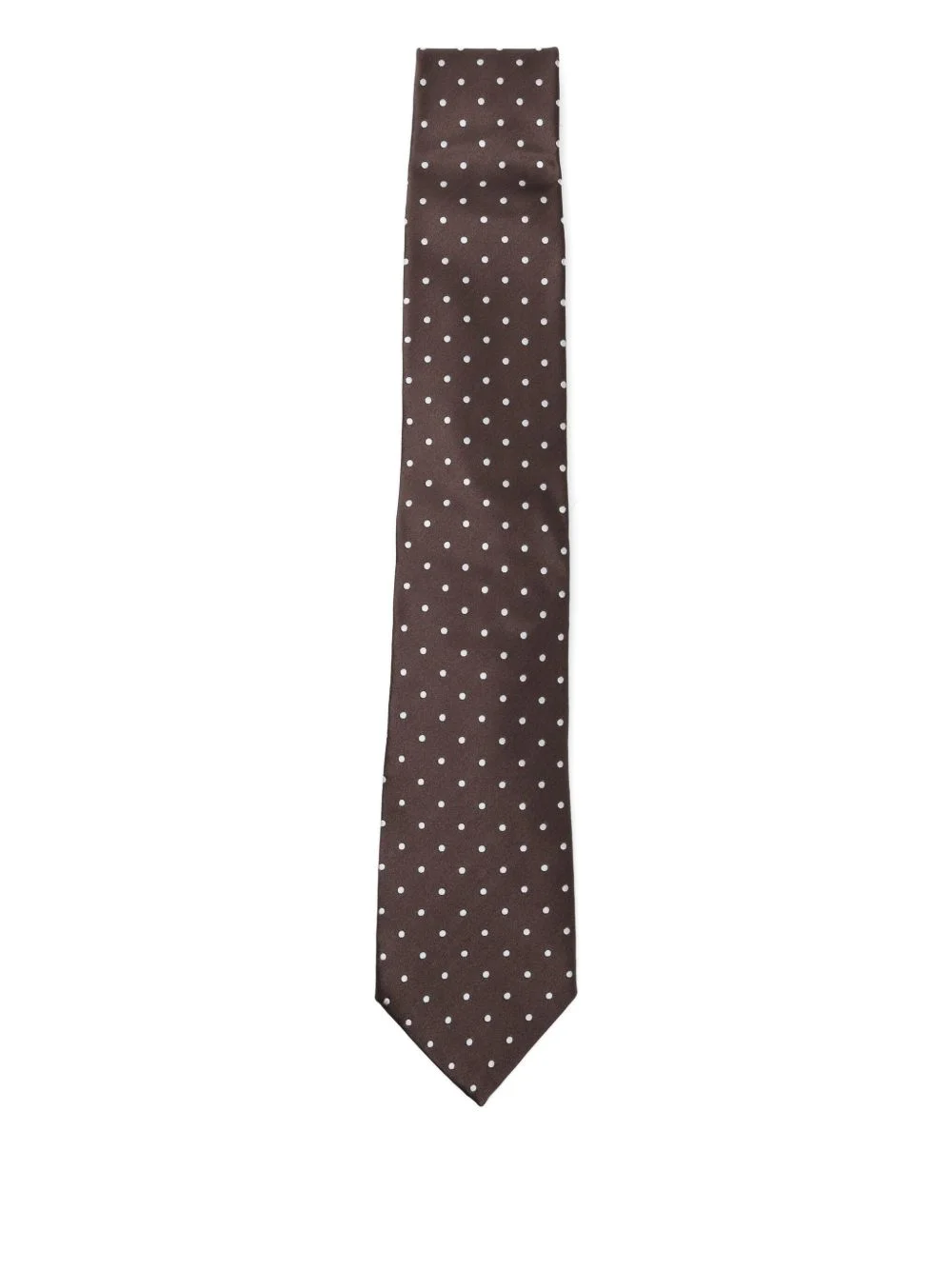 silk polka-dot tie Highlights - Cedar brown - Embroidered logo - Pointed tip Made in Italy Composition Silk 100% SIZE & FIT Measurement LENGTH 58.26 in(148 cm) WIDTH 3.34 in(8.5 cm) Washing instructions Dry Clean Only