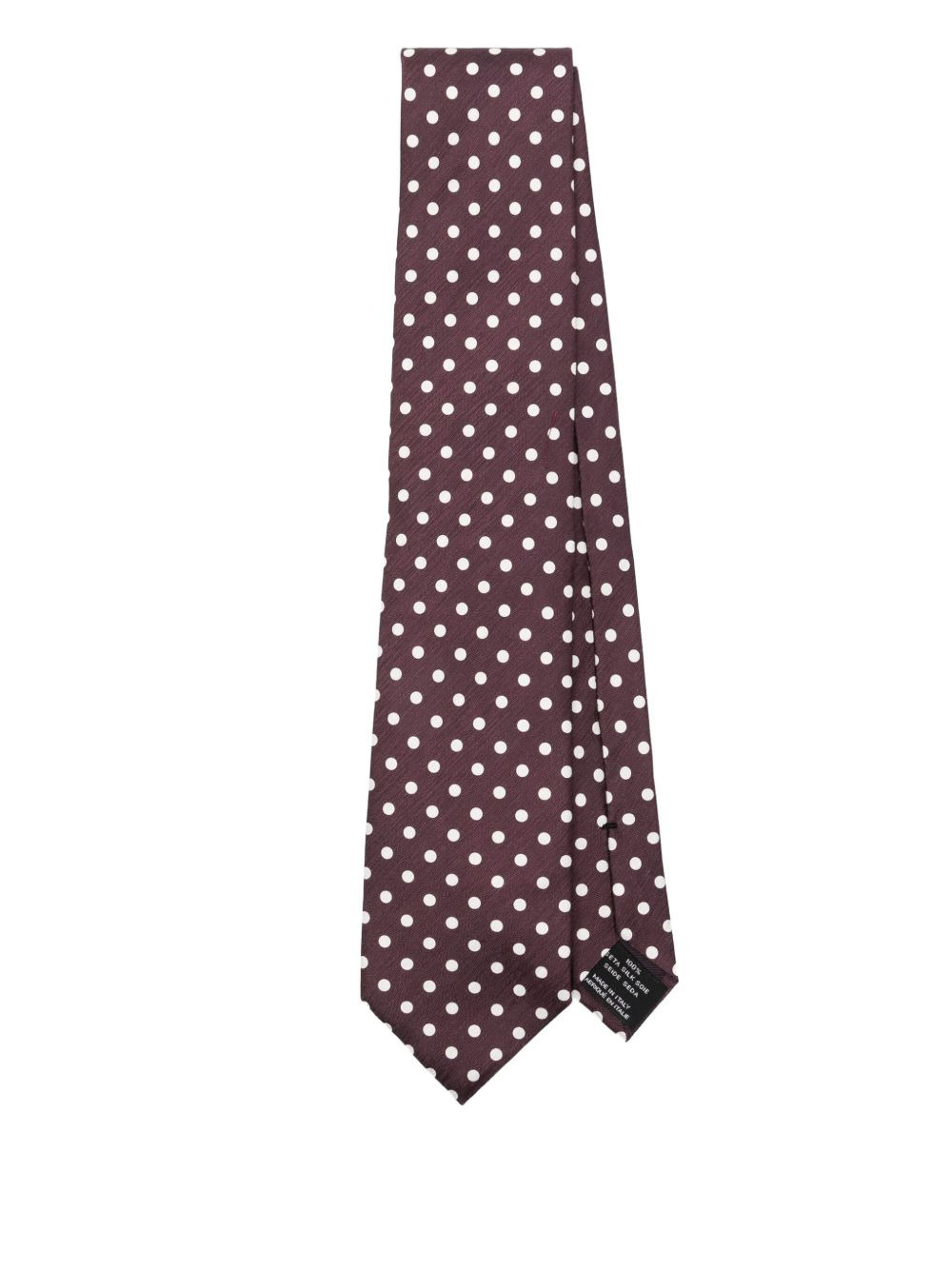 silk polka-dot tie Highlights - Dark red - Self-tie fastening - Pointed tip Made in Italy Composition Silk 100% SIZE & FIT Measurement LENGTH 61.02 in(155 cm) WIDTH 3.54 in(9 cm) Washing instructions Dry Clean Only